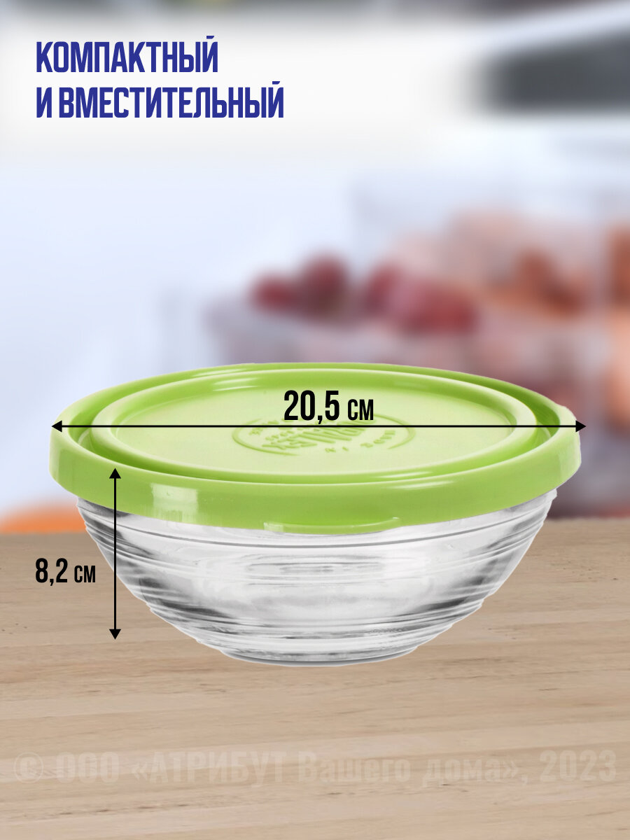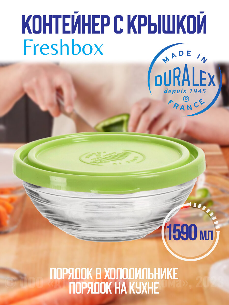 Салатник FRESHBOX 1590мл 20.5см круглый с зелёной крышкой DURALEX 9118AM06A1111