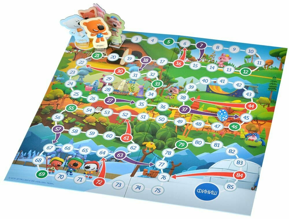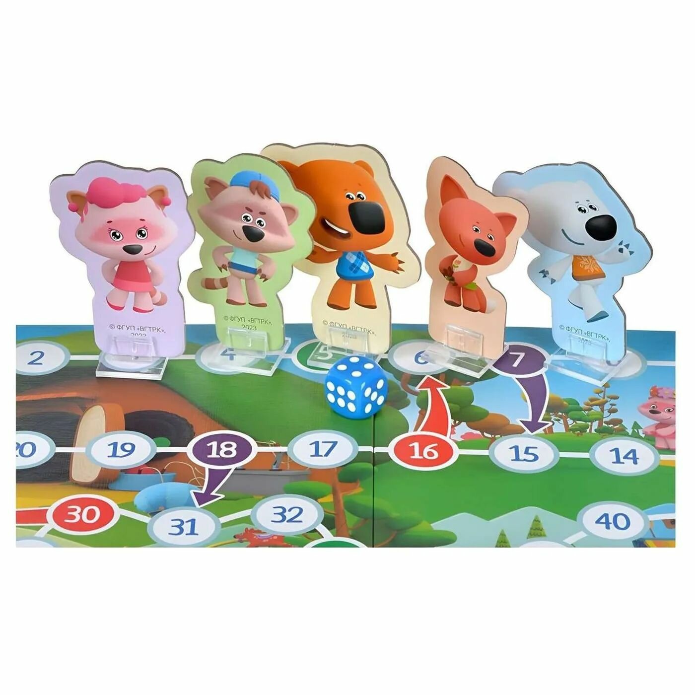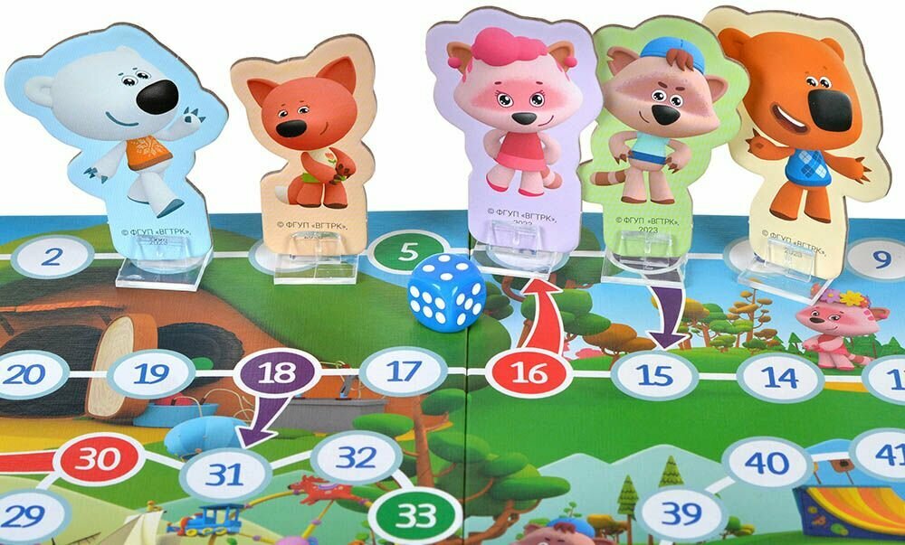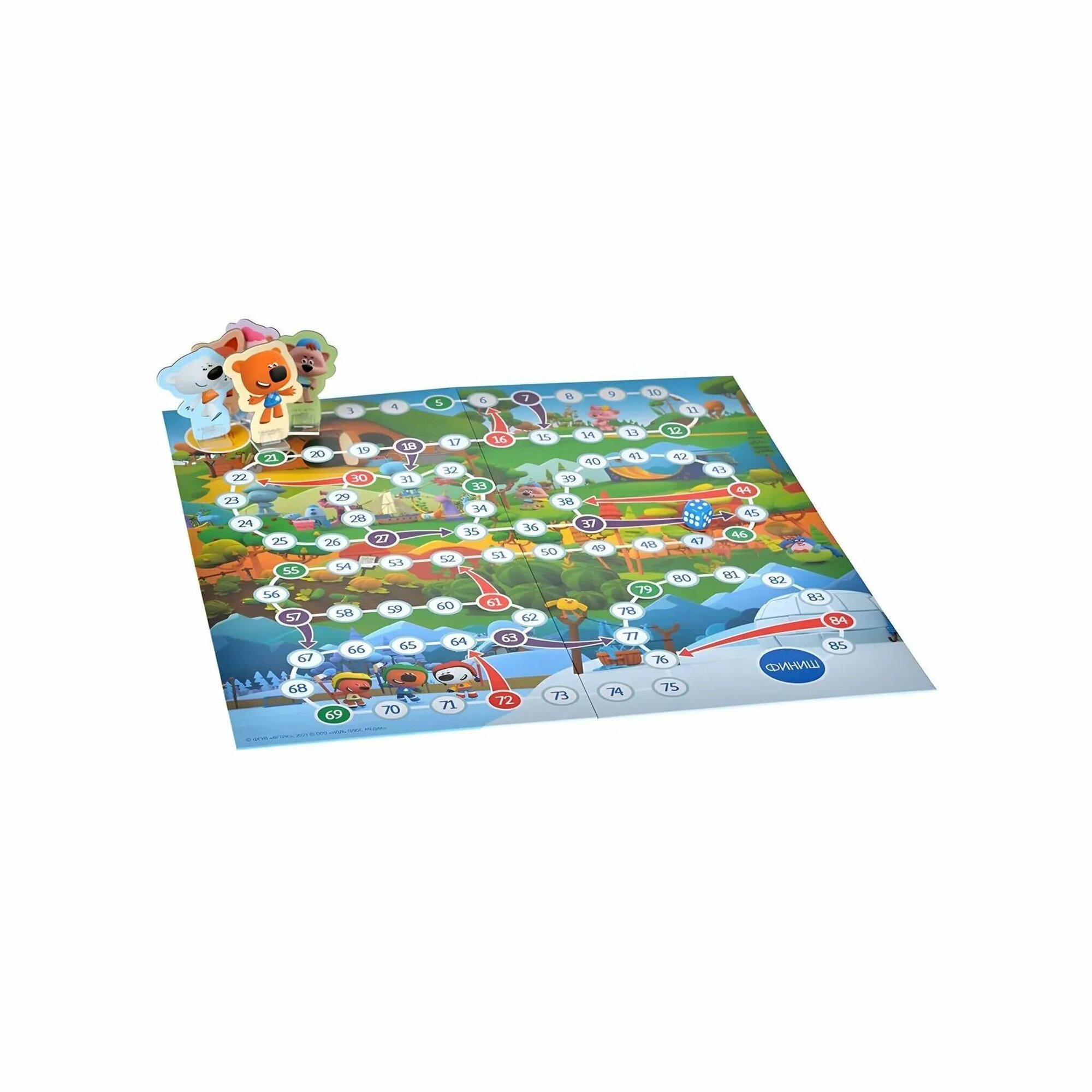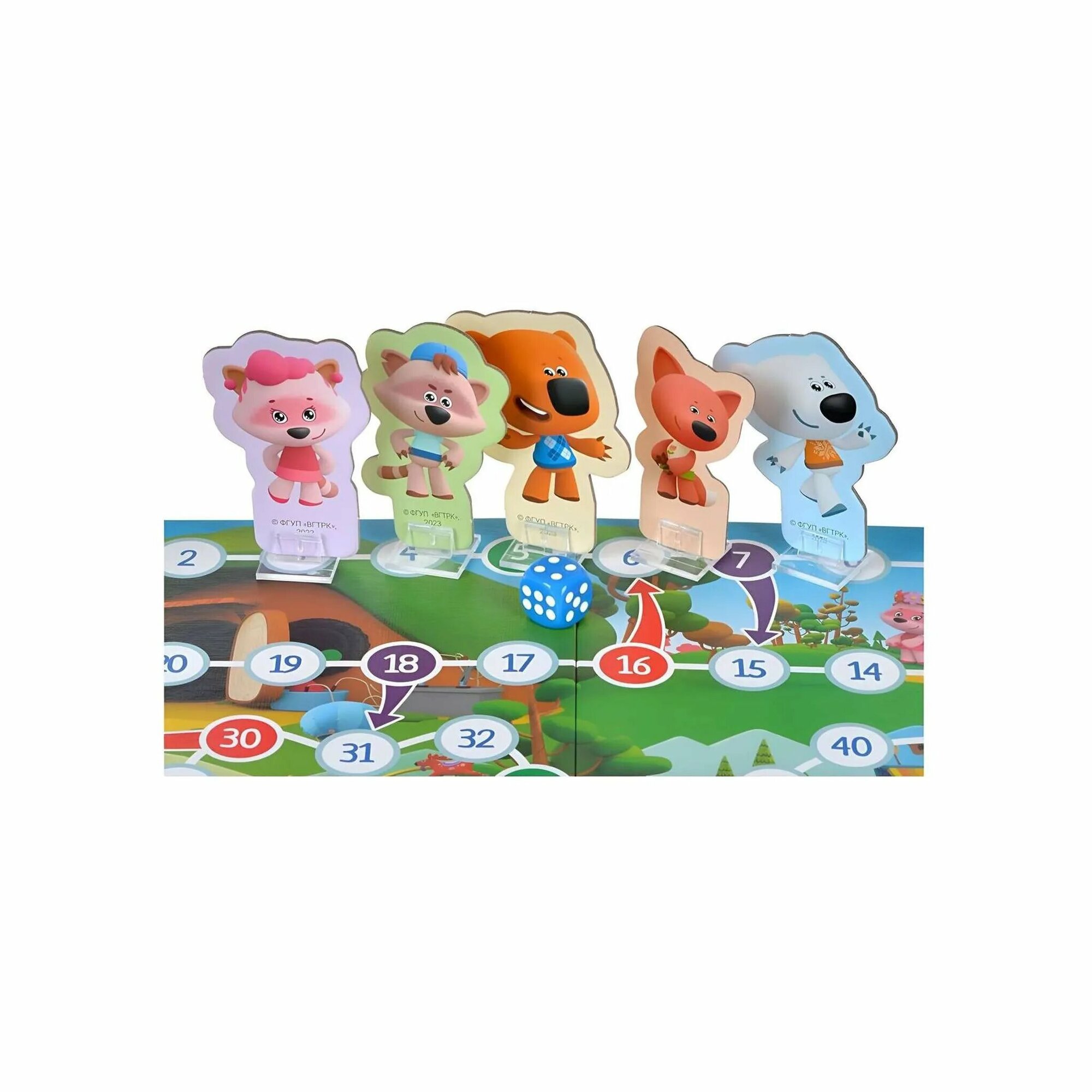 Ох уж этот Кеша! Вечно изобретает всякие штуки: то напоминалку, то портал… То вообще машину, которая позволяет путешествовать по разным временам года! Подумать только: теперь друзьям не нужно ждать, чтобы побегать по весенним полям, полежать на солнышке, посмотреть на рыжие осенние листья или покататься на льду! Присоединяйтесь и поучаствуйте в веселье с Ми-ми-мишками! Об игре Настольная игра "Ми-ми-мишки: Времена года" – это классическая бродилка, в которую легко сможет играть вся семья. В компании любимых персонажей вы пройдёте по четырём временам года и узнаете, кто является самым удачливым! Как играть? Правила "Времён года" предельно просты, что позволит без проблем пригласить детей от трёх лет. В свой ход вы бросаете кубик и двигаете фишку на выпавшее количестве клеток. При этом некоторые ячейки на поле обладают особыми свойствами: Зелёная клетка позволит вновь подвигаться на то же количество клеток Фиолетовая клетка продвинет вашу фишку по стрелке вперёд Красная фишка подвинет вашу фишку по стрелке назад После того, как вы продвинулись, передайте кубик игроку по часовой стрелке. Кто победил? Как только хотя бы один игрок окажется на клетке "Финиш", игра заканчивается. Поздравляем победителя – это было отличное путешествие! Ура! Игровое поле с временами года Шестигранный кубик 5 фишек героев 5 подставок для них Правила игры Размер коробки: 198x198x57 мм
