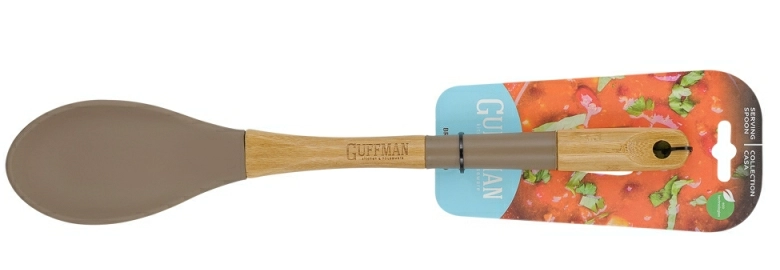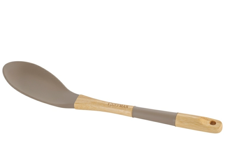 Материал: бамбук/силикон. Цвет: коричневый/бамбук. Не рекомендуется мыть в посудомоечной машине. На кончике имеется отверстие для подвеса. Не содержит бисфенол А и фталаты.