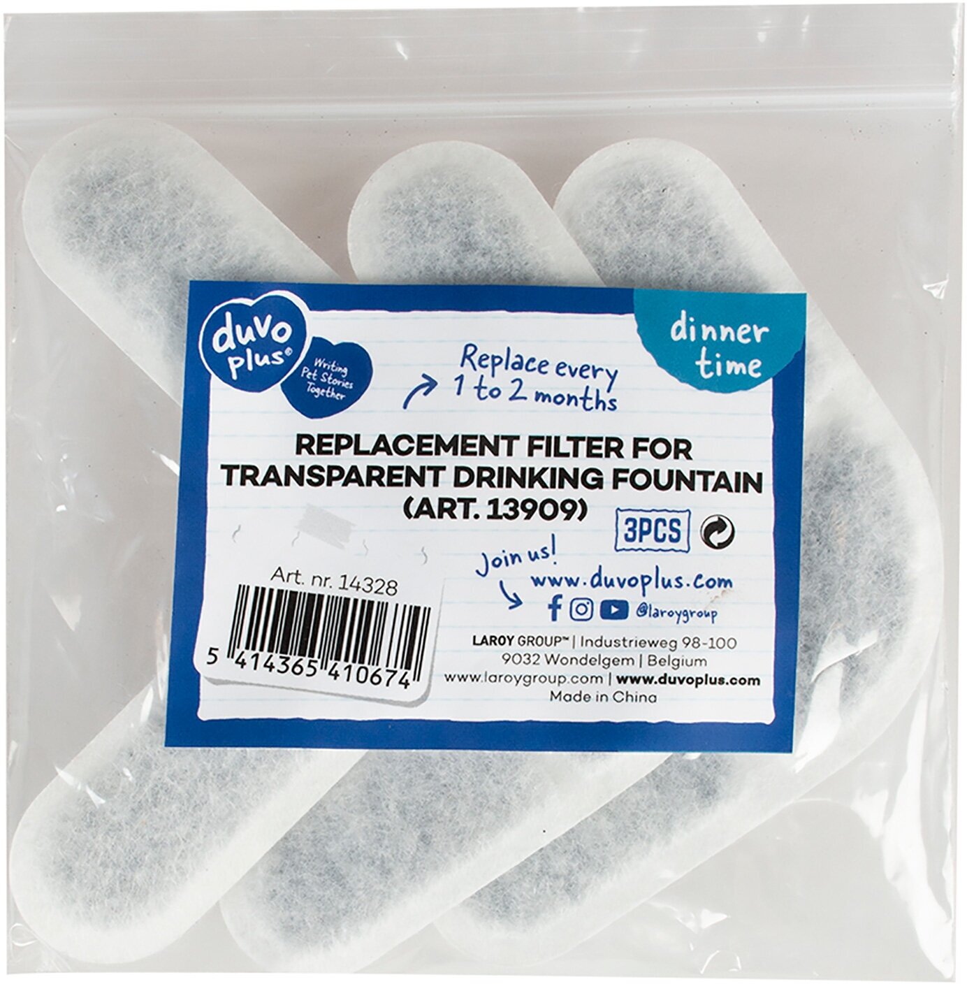 DUVO+ Фильтр сменный для питьевого фонтанчика для животных арт.13909 3 шт (Бельгия) EBI (14328/DV)