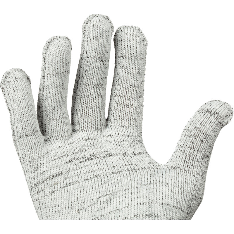 Бесшовные трикотажные перчатки из полиэтиленовой пряжи для защиты от порезов JC051 (5 класс), размер XL/10. Выполнены из высокопрочных нитей полиэтилена. 13 класс вязки. Без покрытия для более высокой чувствительности пальцев. На поверхности перчатки отсутствует ворс, что важно для соблюдения чистоты продукта.