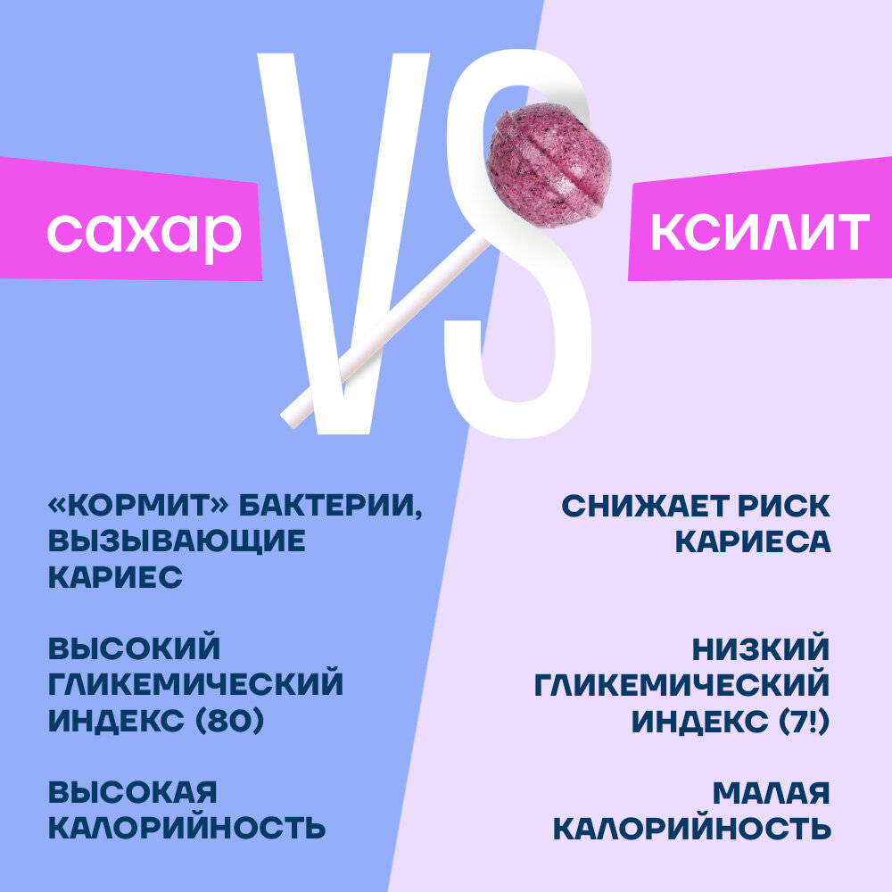 Леденцы без сахара с ксилитом KsilibonСпособствуют укреплению эмали и предотвращают появление кариеса. Леденцы содержат в своем составе ксилит, вещество, которое подавляет рост и развитие кариесогенных бактерий. Леденцы с ксилитом усиливают слюноотделение, повышают защитные свойства слюны, приводят в норму кислотно-щелочной баланс полости рта. Леденцы Ksilibon безопасны в употреблении, станут отличным вариантом для диабетиков и заменят конфеты без сахара. Вкус сочной голубики понравится, как детям, так и взрослым. Рекомендации к применению: Для детей и взрослых ежедневно 1-2 леденца. В упаковке 24 леденца
