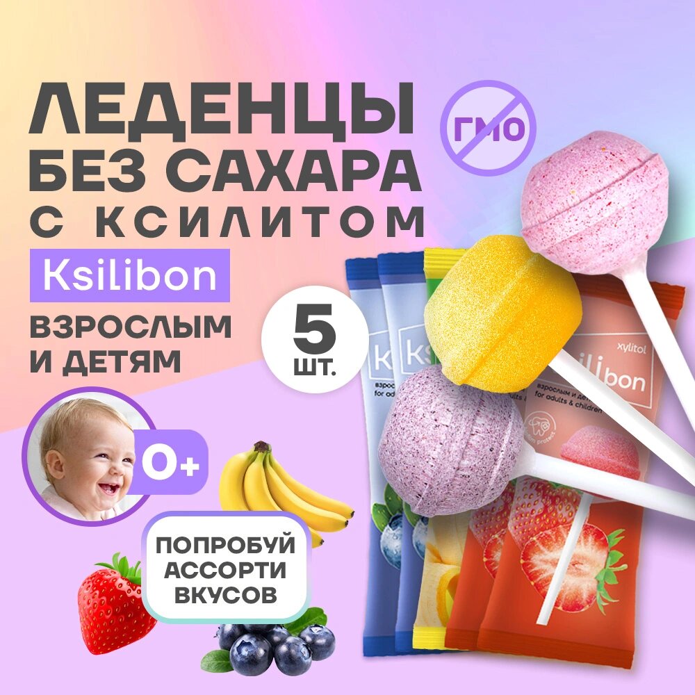 Леденцы без сахара, Ksilibon способствуют укреплению эмали и предотвращают появление кариеса. Леденцы содержат в своем составе ксилит, вещество, которое подавляет рост и развитие кариесогенных бактерий. Леденцы с ксилитом усиливают слюноотделение, повышают защитные свойства слюны, приводят в норму кислотно-щелочной баланс полости рта. Леденцы на палочке в удобном формате, безопасны в употреблении. Ksilibon станут отличным вариантом для диабетиков и заменят конфеты без сахара для диабетиков. Ассорти вкусов: банана, клубники, голубики понравится, как детям, так и взрослым. Леденцы можно презентовать ребенку, маме, папе, как полезный подарок, сладкий подарок и подарок на день рождения. Рекомендации к применению: для детей и взрослых ежедневно 1-2 леденца. В упаковке 12 леденцов со вкусом клубники – 4 шт., голубики - 4 шт., банана - 4 шт.