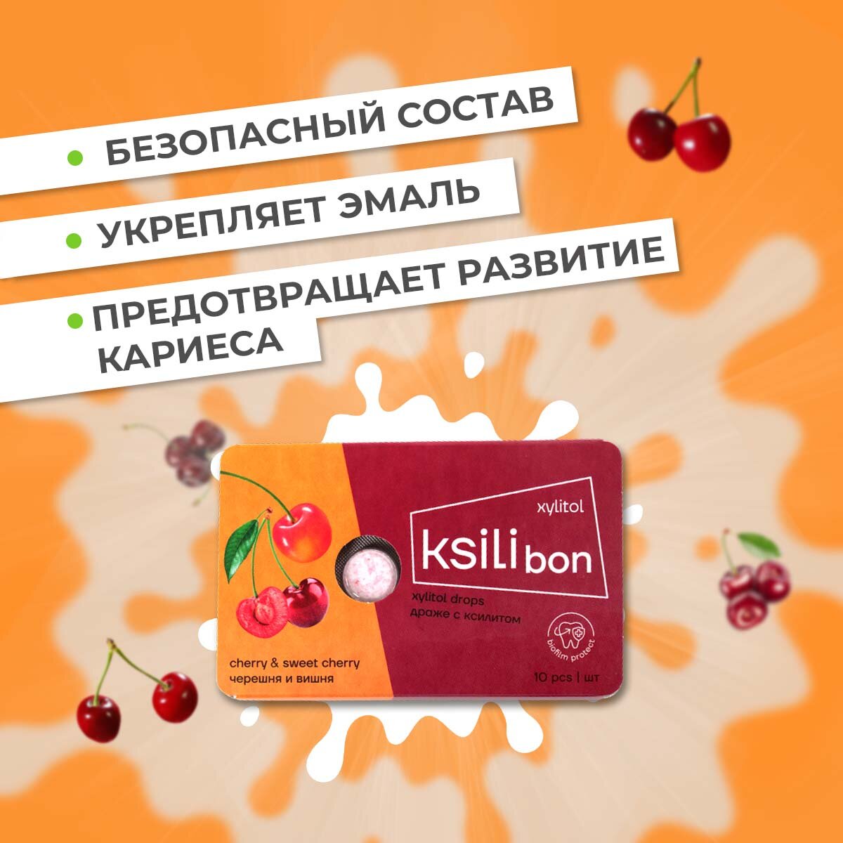 Леденцы без сахара с ксилитом Ksilibon для детей и взрослых. В упаковке 10 драже со вкусом вишни и черешни.Содержащийся в них ксилит подавляет рост и развитие кариесогенных бактерий, укрепляя эмаль и предотвращая появление кариеса. К тому же, леденцы с ксилитом стимулируют слюноотделение, что способствует поддержанию здоровой полости рта.Если вы заботитесь о своем здоровье и ищете альтернативу сладостям с сахаром, Ksilibon идеально подходят и для диабетиков.Помимо этого, Ksilibon - отличный подарок для ваших близких. Сделайте им приятный сюрприз, даря не только сладкие радости, но и заботу о здоровье. Это идеальный подарок для детей, мам, пап и всех, кто ценит качество и экологичность продуктов.Выберите Ksilibon и присоединитесь к тем, кто дарит себе и своим близким здоровье и радость каждый день!