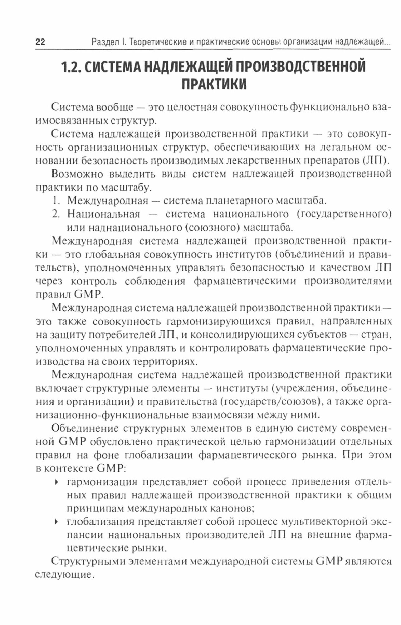 Учебно-методическое пособие, созданное на основе учебной программы и федерального государственного образовательного стандарта в области производства лекарственных средств и контроля качества лекарственных средств, может служить в качестве начального руководства по организации фармацевтического производства в соответствии с Правилами GMP (Good Manufacturing Practicе), Правилами надлежащей производственной практики. В нем даны теоретические и практические основы организации надлежащей производственной практики на предприятии, конкретные примеры организации фармацевтического производства с учетом Правил GMP, структурные схемы к каждой теме, способствующие запоминанию, а также образцы внутренних документов, перечней, бланков и форм, используемых при соблюдении на практике Правил GMP Евразийского экономического союза.
