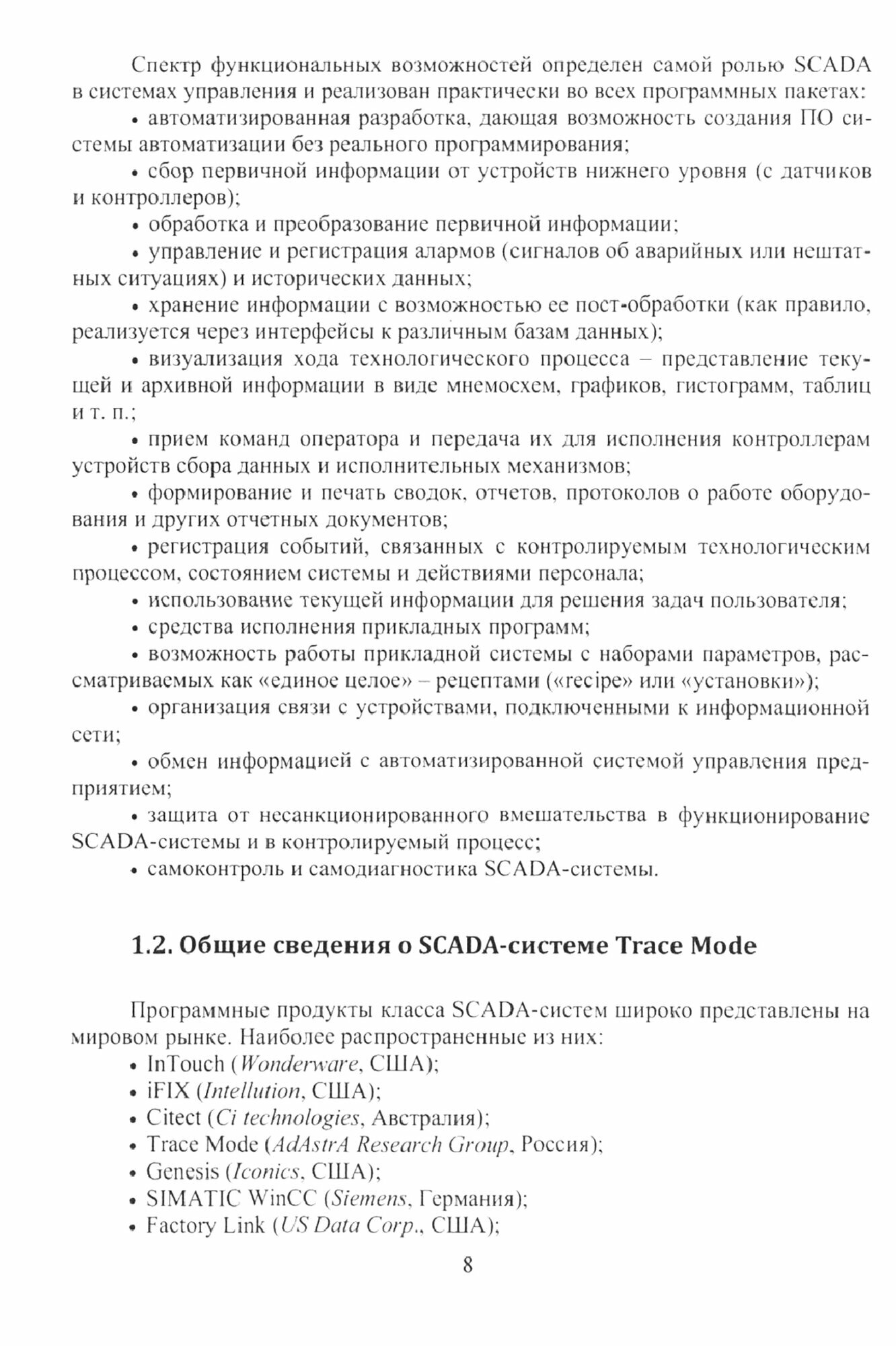 Приведены общие сведения о SCADA-системах и показаны принципы работы в интегрированной среде разработки Trace Mode 6. Даны варианты заданий курсового проекта.