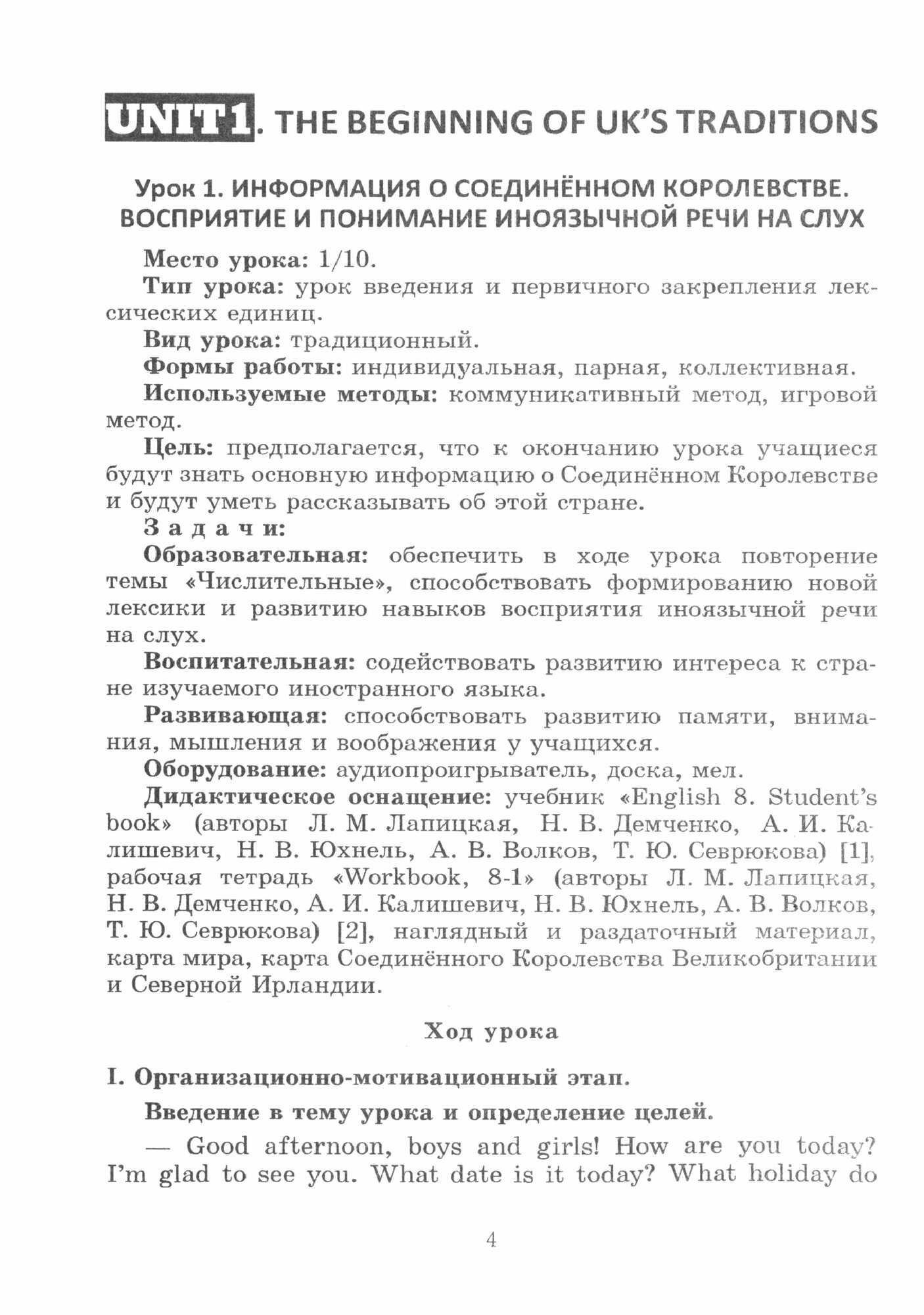 Английский язык. 8 класс. Поурочные планы. Unit 1-2. Пособие для учителей; Выснова, 2023