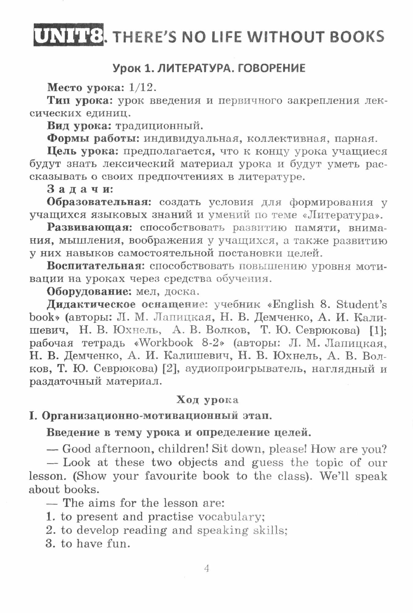 Издание адресуется учителям английского языка для подготовки и организации учебного процесса на уроках в 8 классе, включает систематизированные поурочные планы-конспекты.