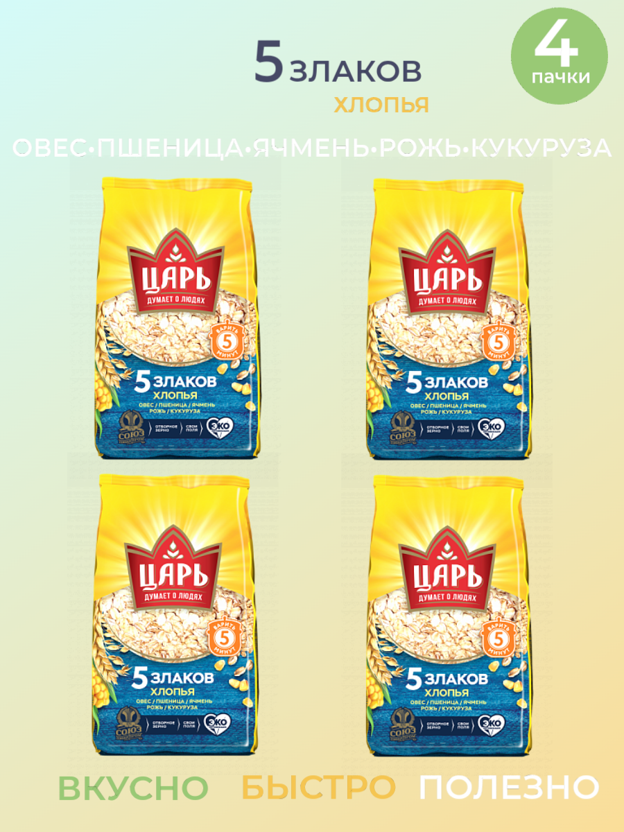 Хлопья из 5-х злаков "Царь" 400гр м/у * 4 шт