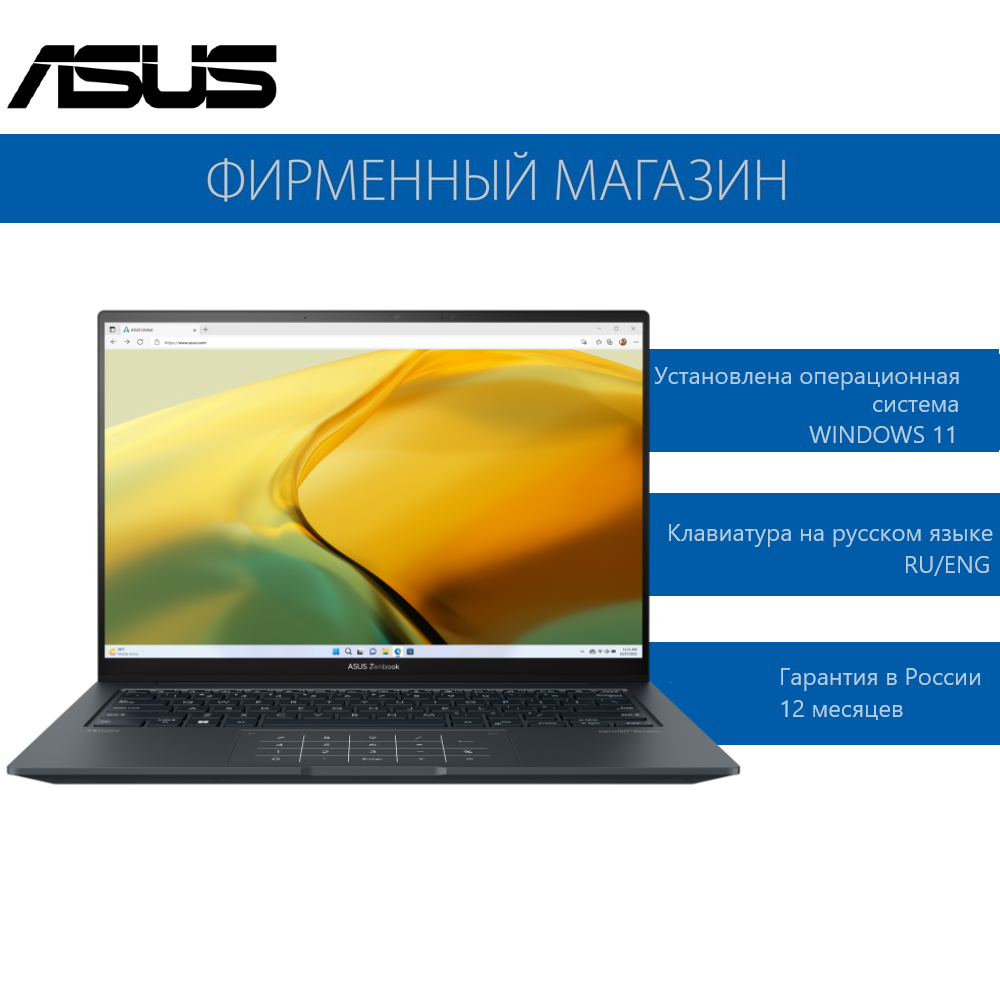 Ноутбук ASUS Zenbook 14X OLED UX3404VA-M9024W 90NB1081-M002Z0 (14.5" Core i7 13700H 16Gb/ SSD 1024Gb Iris Xe Graphics eligible) Серый