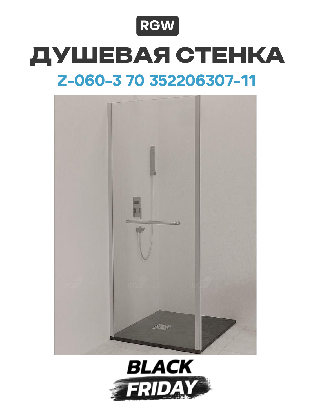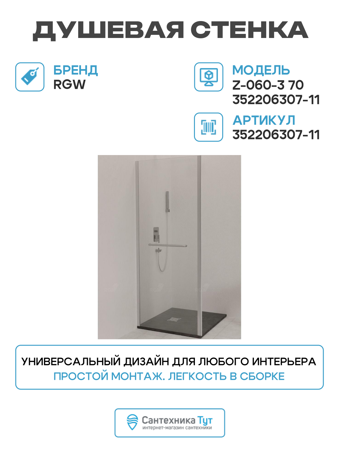 Душевая стенка RGW Z-060-3 70 352206307-11 профиль Хром стекло прозрачное