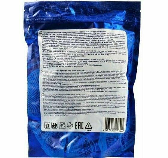Средство косметическое для принятия ванн: морская соль для ванн натуральная.
