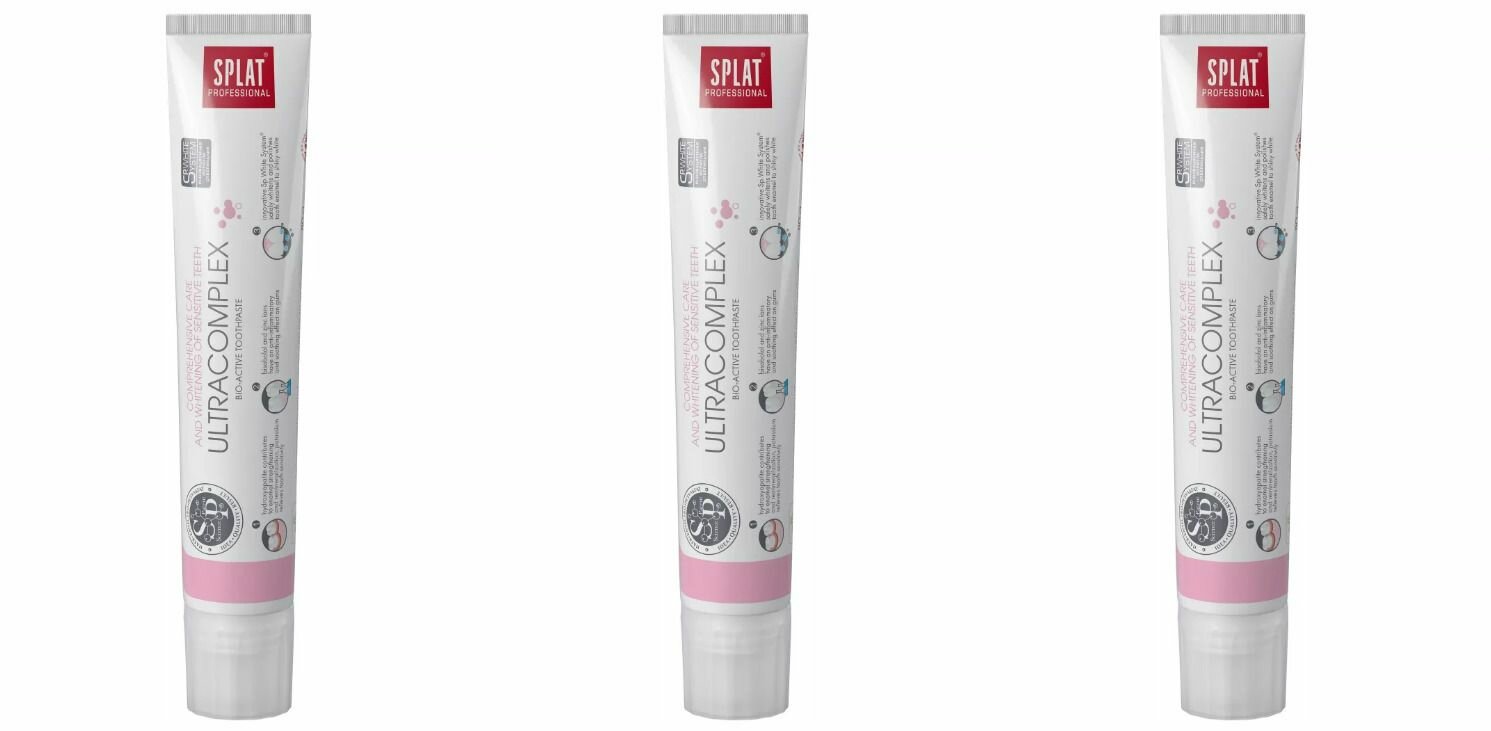 Зубная паста Ультракомплекс разработана SPLAT Professional для комплексного ухода за чувствительными зубами и их бережного отбеливания. Натуральный фермент папаин с компонентом Polydon эффективно расщепляют налет. Инновационная система Sp.White System безопасно отбеливает и полирует эмаль. Вытяжка из эфирного масла ромашки и ионы цинка обладают противовоспалительным действием и успокаивают раздраженные десны. Органический кальцис в сочетании с гидроксиапатитом эффективно укрепляют зубную эмаль, устраняя причину повышенной чувствительности зубов.