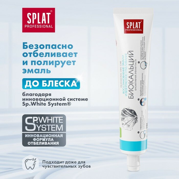 Комплексная зубная паста с биоактивным Кальцисом, полученным из яичной скорлупы, и гидроксиапатитом строительным веществом твердых тканей зуба. Высокое содержание активных компонентов позволяет укрепить эмаль и снизить повышенную чувствительность зубов уже после нескольких дней использования. Сочетание натурального фермента папаина с компонентом Polydon препятствует образованию налета и зубного камня. Бикарбонат натрия нормализует pН-баланс полости рта и заботится о здоровье десен. Инновационная система Sp. White system безопасно отбеливает и полирует эмаль до блеска. Паста предназначена для восстановления эмали и снижения чувствительности зубов. Она насыщает природным кальцием поврежденные зоны на начальных стадиях кариеса. Натуральные ферменты расщепляют налет, способствуя сохранению свежести дыхания.
