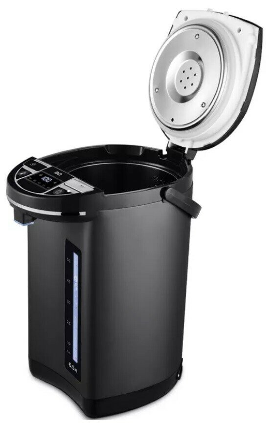 Большой объем емкости, чтобы вскипятить горячий чай для всей семьи, мощность 900 Вт, мощность в режиме поддержания температуры 35 Вт, индикатор уровня воды. По индикатору легко ориентироваться в количестве налитой в термопот воды, 2 способа подачи воды - нажатие чашкой на клапан, электрическая помпа. Поддержание температуры, режим повторного кипячения. Температура автоматического подогрева воды ниже температуры кипения. При необходимости чайник-термос позволяет быстро довести воду до кипения. Повторное кипячение, помогает очистить воду от нежелательной хлорки. После закипания воды чайник-термос автоматически переключится в режим поддержания температуры, и сохранит воду горячей на долгое время, защита от включения без воды.