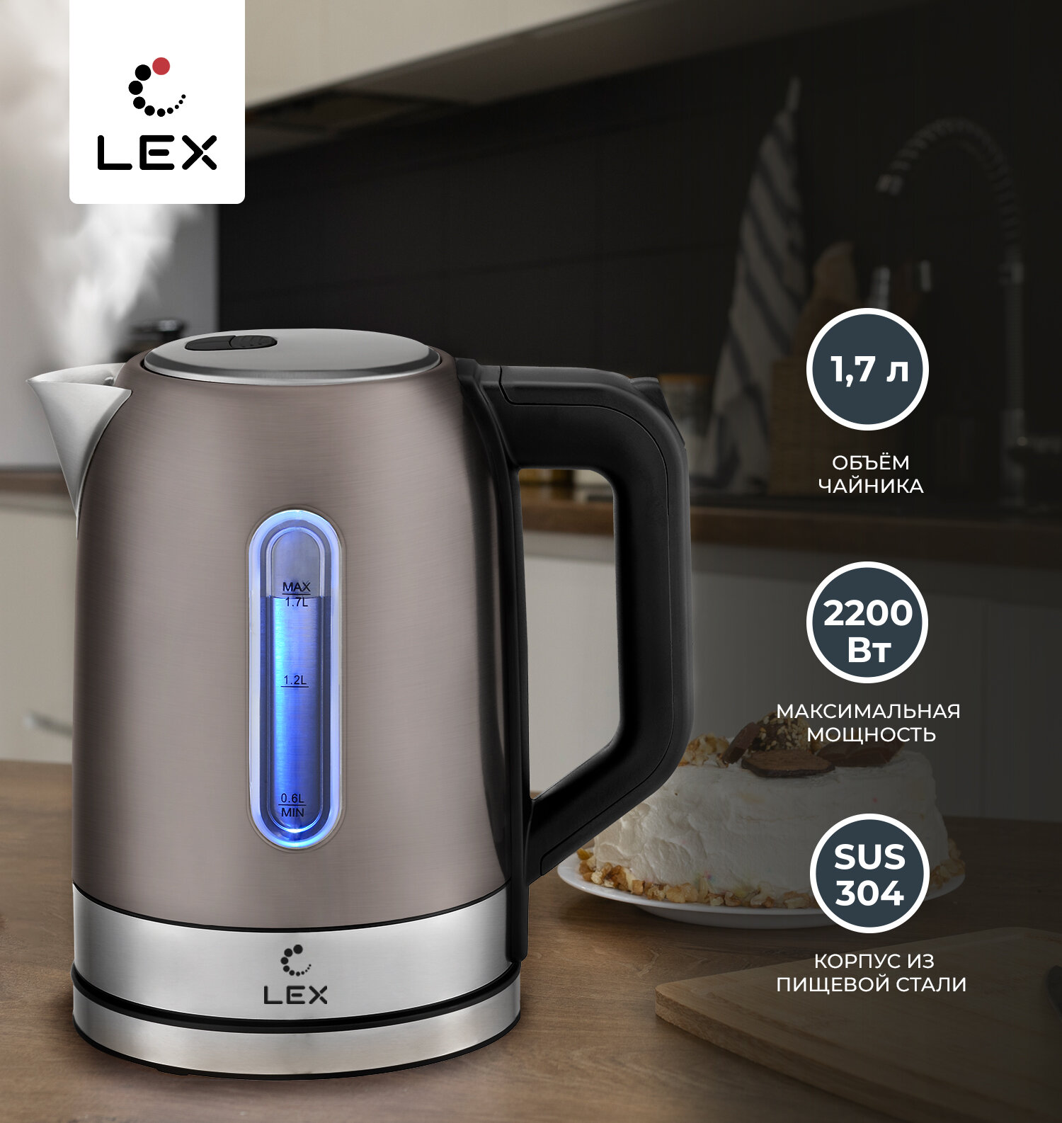 чайник LEX LX 30018-3 2200Вт 17л металл коричневый (LX30018-3)