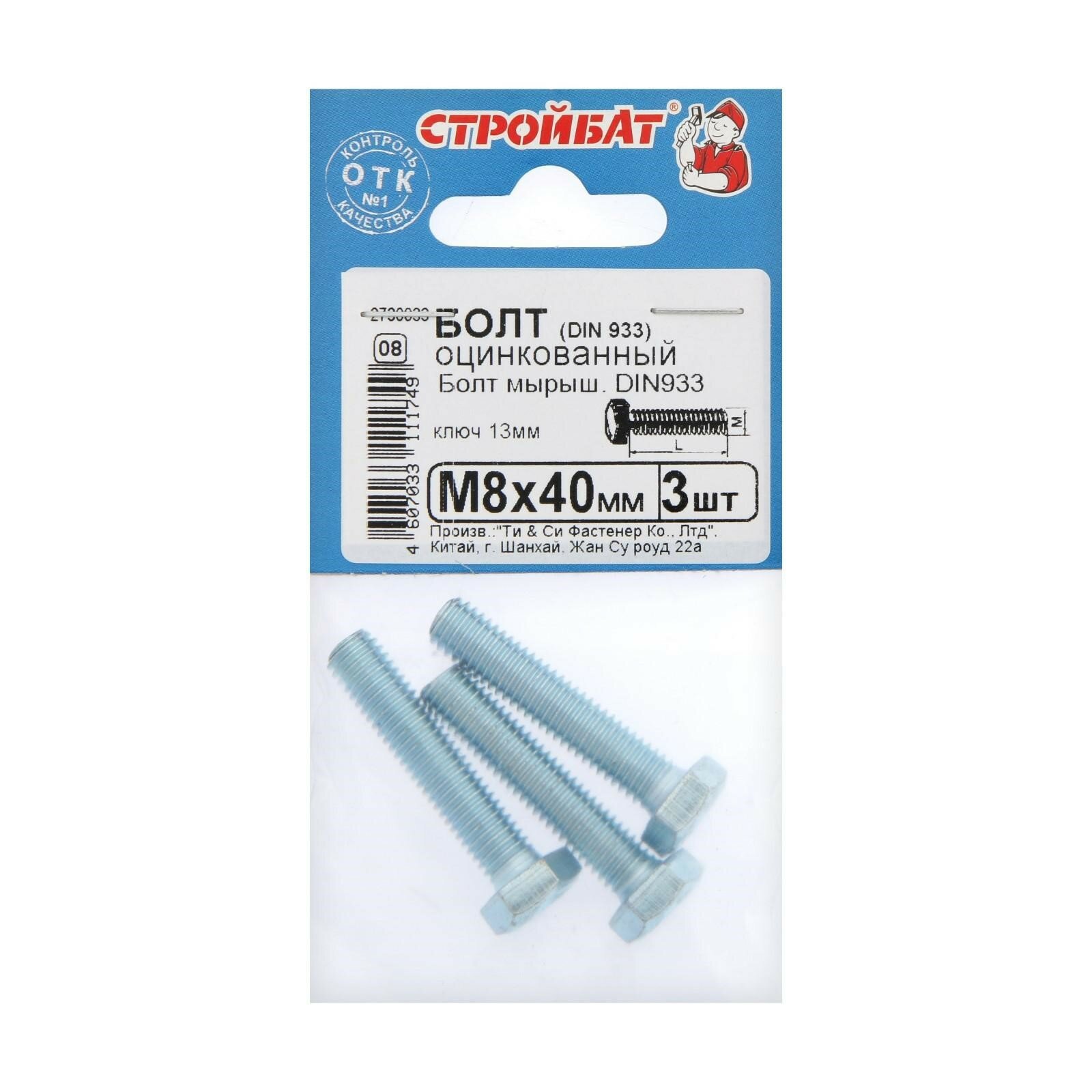 Болт Стройбат оцинкованный DIN 933 М8 х 40 3 штуки