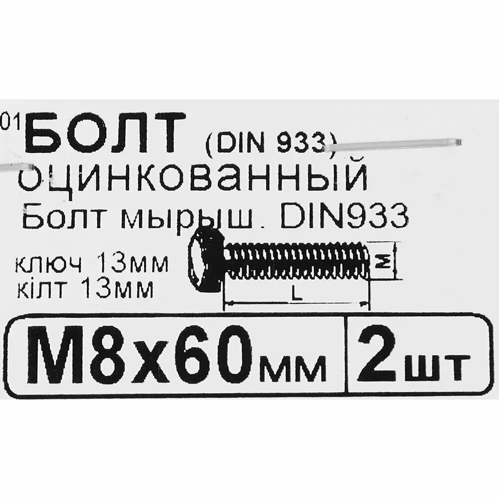 Модель: оцинкованный DIN 933 М8 х 60 2 штуки