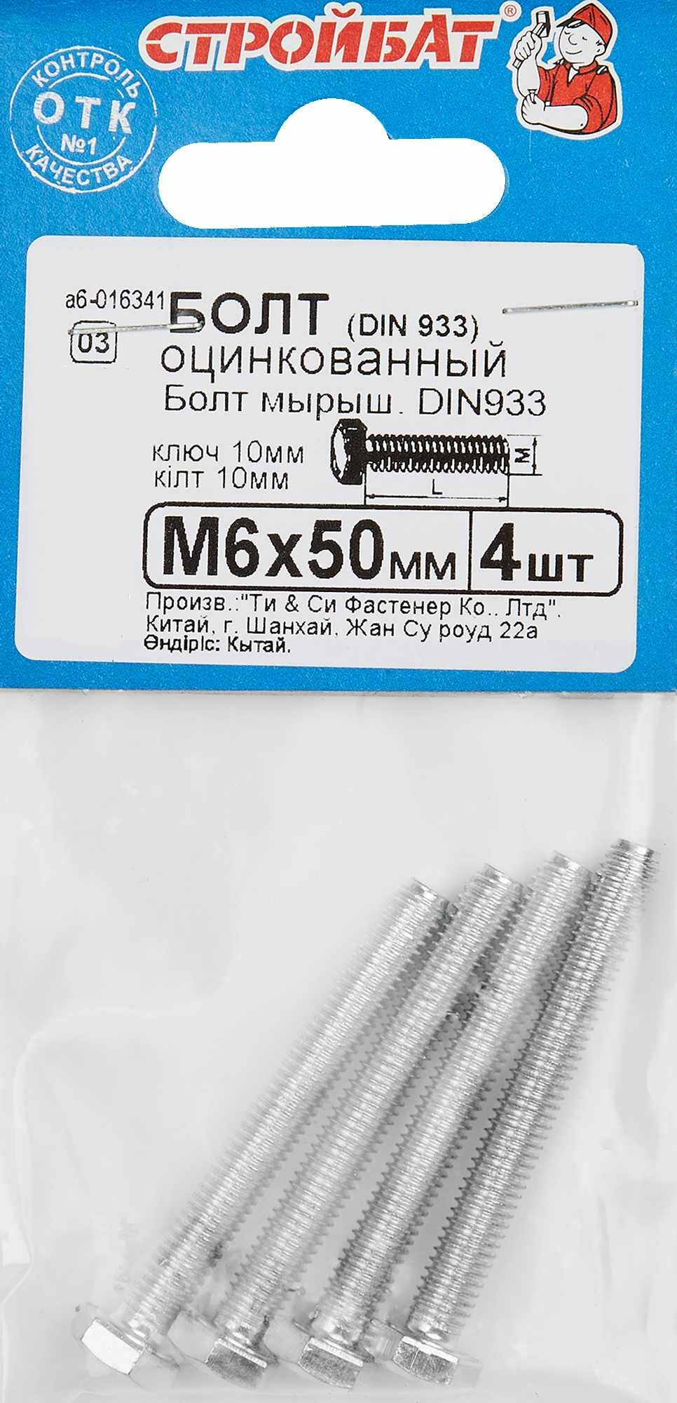 Болт Стройбат оцинкованный DIN 933 М6 х 50 4 штуки