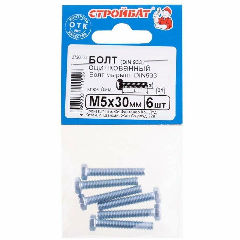 Болт Стройбат оцинкованный DIN 933 М5 х 30 6 штук