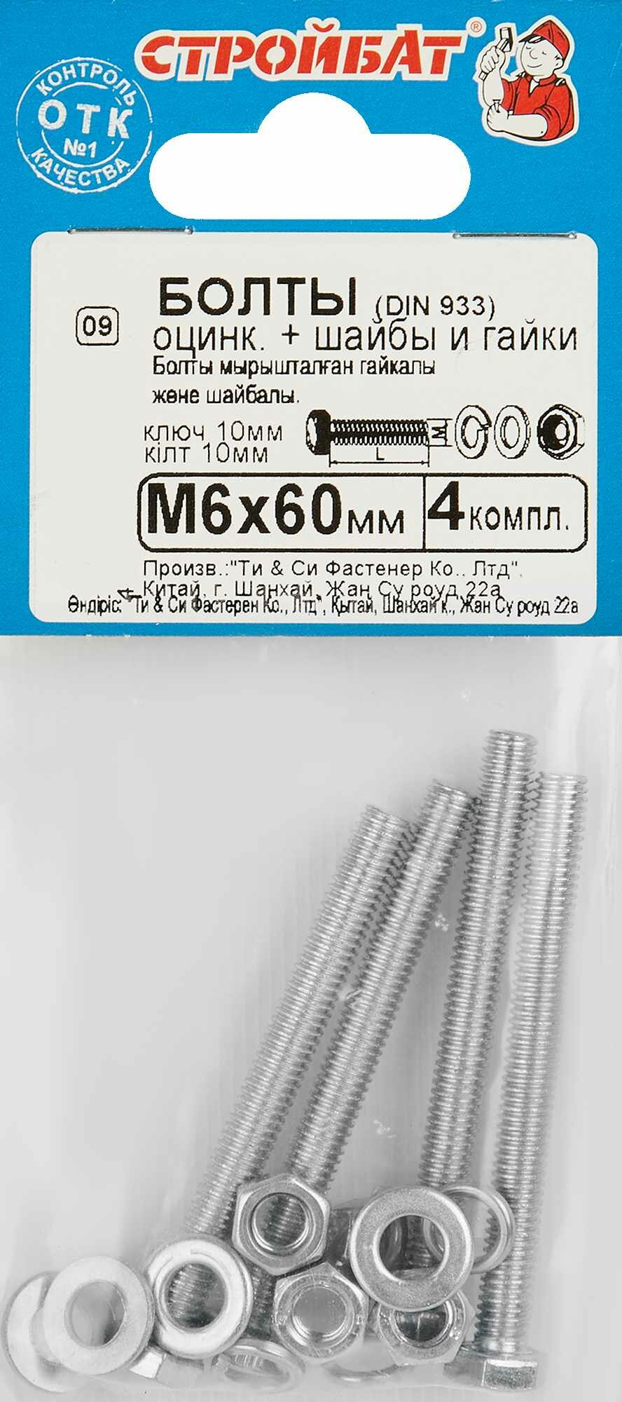 Болты DIN 933 4 шт 6 х 60 мм Стройбат М 6x60 DIN933 4 шт