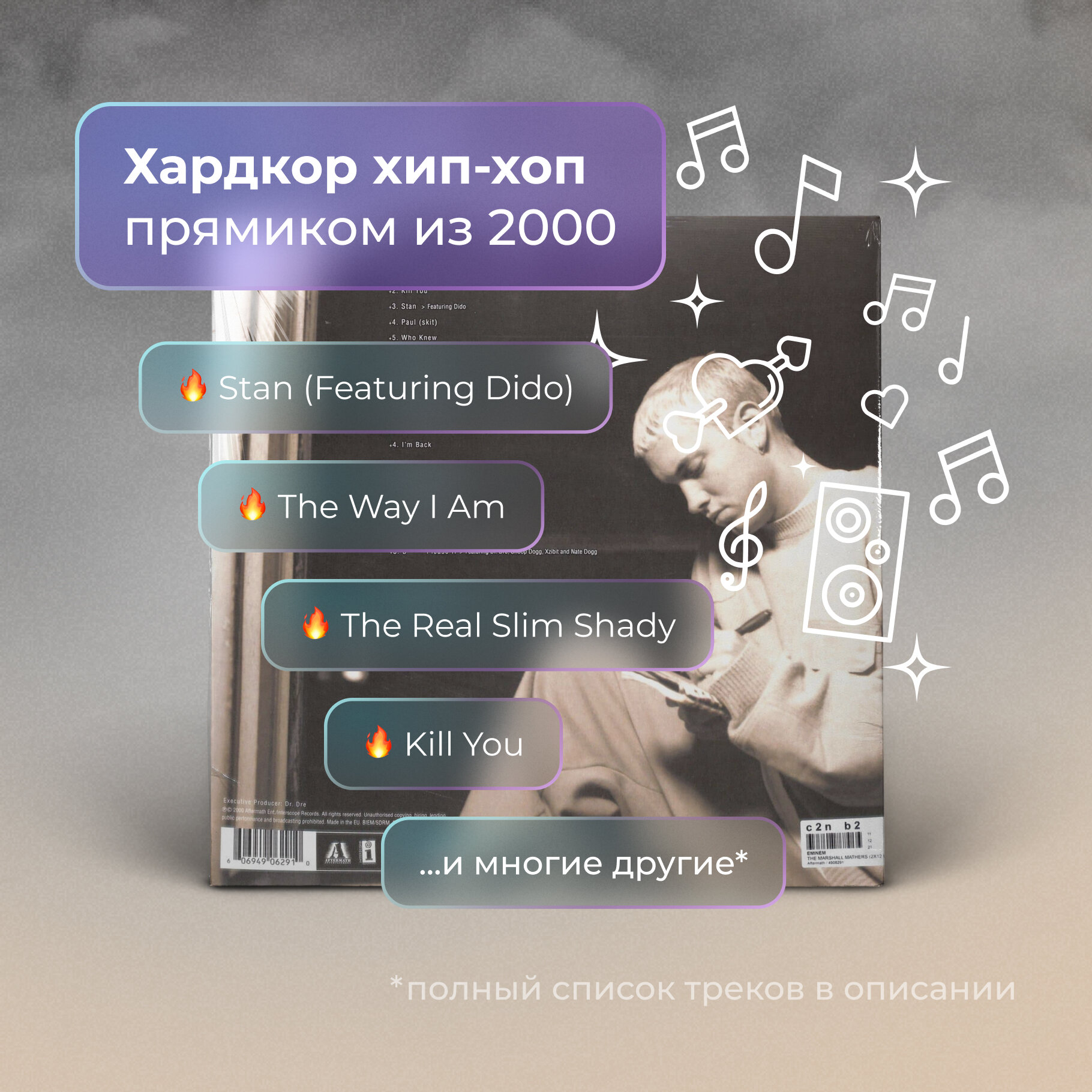 Eminem – The Marshall Mathers LP (Reissue, 180 gram) 2LP"The Marshall Mathers LP" — третий студийный альбом американского рэпера Эминема, выпущенный 23 мая 2000 года лейблами Aftermath Entertainment и Interscope Records. Пластинка спродюсирована Dr. Dre и Эминемом, а также The 45 King, братьями Басс и Мел-Маном, и записана практически за два месяца в нескольких американских студиях. По сравнению с предыдущей работой музыканта, "The Slim Shady LP", альбом отличается более интроспективной лирикой — Маршалл размышляет о своём восхождении к славе, критиках его песен и отчуждение от семьи и жены. Альбом причисляется к «трансгрессивной музыке» и сочетает в себе песни в жанрах хорроркор и хардкор-хип-хоп, а также сатирические треки. В записи принимали участие такие артисты, как Дайдо, RBX, Sticky Fingaz, D12, Snoop Dogg, Xzibit и Nate Dogg."The Marshall Mathers LP" возглавил чарт Billboard 200 и оставался на вершине восемь недель подряд. Альбом был ещё более успешен с коммерческой точки зрения, чем предыдущая пластинка — за первую неделю тираж проданных копий составил 1,78 миллиона, что сделало его одним из самых быстрораспродаваемых студийных альбомов в США. К диску вышли несколько синглов: «The Real Slim Shady», «The Way I Am», «Stan», «I’m Back» и «Bitch Please II». Многочисленные журналы и сайты включают "The Marshall Mathers LP" в списки величайших альбомов всех времён. Он признаётся самой лучшей работой в карьере Эминема. Общее количество проданных копий по всему миру составило 25 миллионов; RIAA сертифицировала "The Marshall Mathers LP" как «бриллиантовую» запись. В 2001 году пластинка выиграла «Грэмми» в номинации «Лучший рэп-альбом» и была номинирована в категории «Альбом года», а ведущий сингл «The Real Slim Shady» победил в категории «Лучшее сольное рэп-исполнение». В 2013 году альбом получил «духовное» продолжение — "The Marshall Mathers LP 2". Eminem, настоящее имя — Ма́ршалл Брюс Мэ́терс III (англ. Marshall Bruce Mathers III); род. 17 октября 1972, Сент-Джозеф, Миссури, США) — культовый американский рэпер, автор-исполнитель, композитор, музыкальный продюсер, продюсер и актёр. Помимо сольной карьеры состоял в группе D12 и хип-хоп-дуэте Bad Meets Evil. Является одним из самых продаваемых музыкальных артистов в мире, а также самым продаваемым артистом 2000-х годов. Он назван одним из самых великих музыкантов всех времён многими журналами, включая Rolling Stone, который разместил Эминема под 83-м номером в списке "100 самых великих артистов", а также на 91-м месте в списке "100 величайших авторов песен всех времён". Этот же журнал провозгласил его Королём хип-хопа. Если считать и студийные работы его групп, то у Эминема имеется 13 альбомов, которые достигали первой строчки в Billboard 200. Как сольный артист Эминем продал более 100 миллионов альбомов по всему миру, более 107 миллионов записей и 44 миллиона копий своих альбомов только в Америке. TracklistA1 .