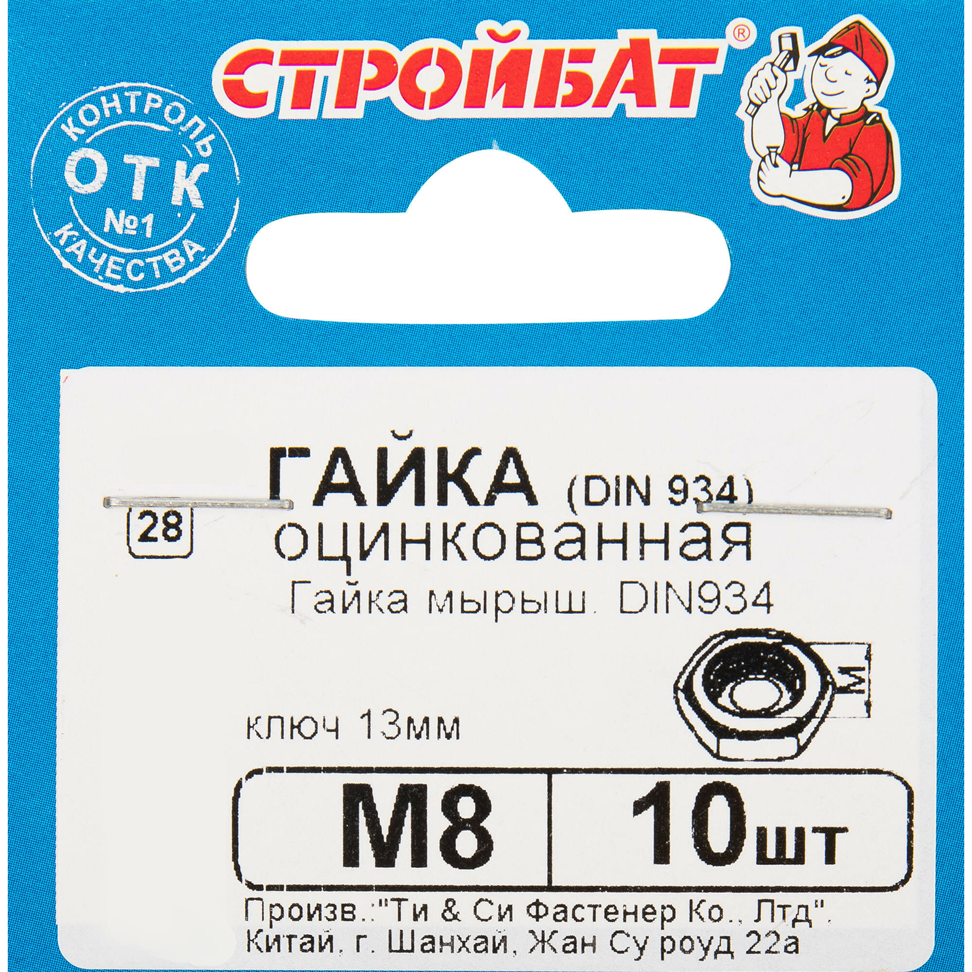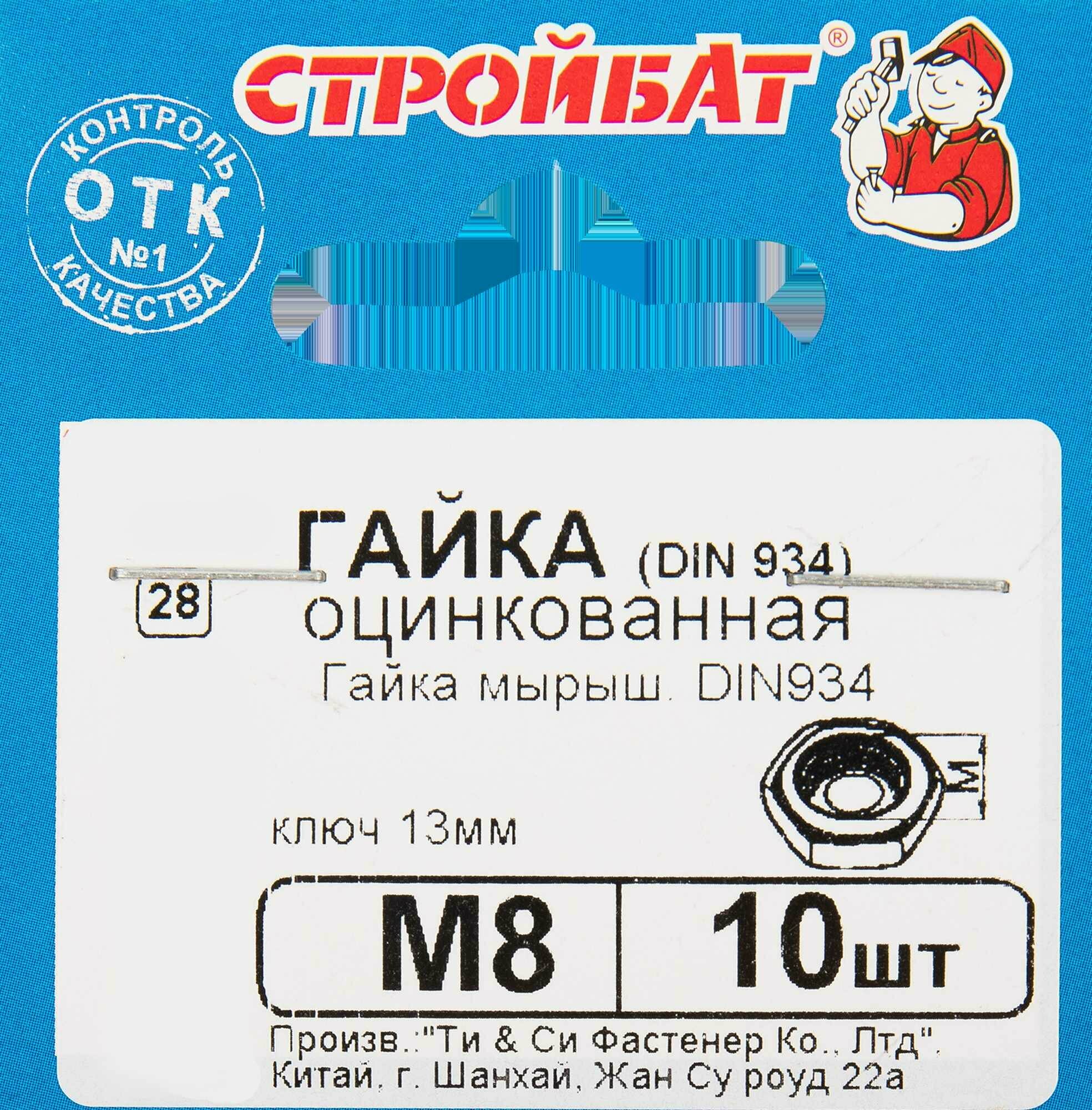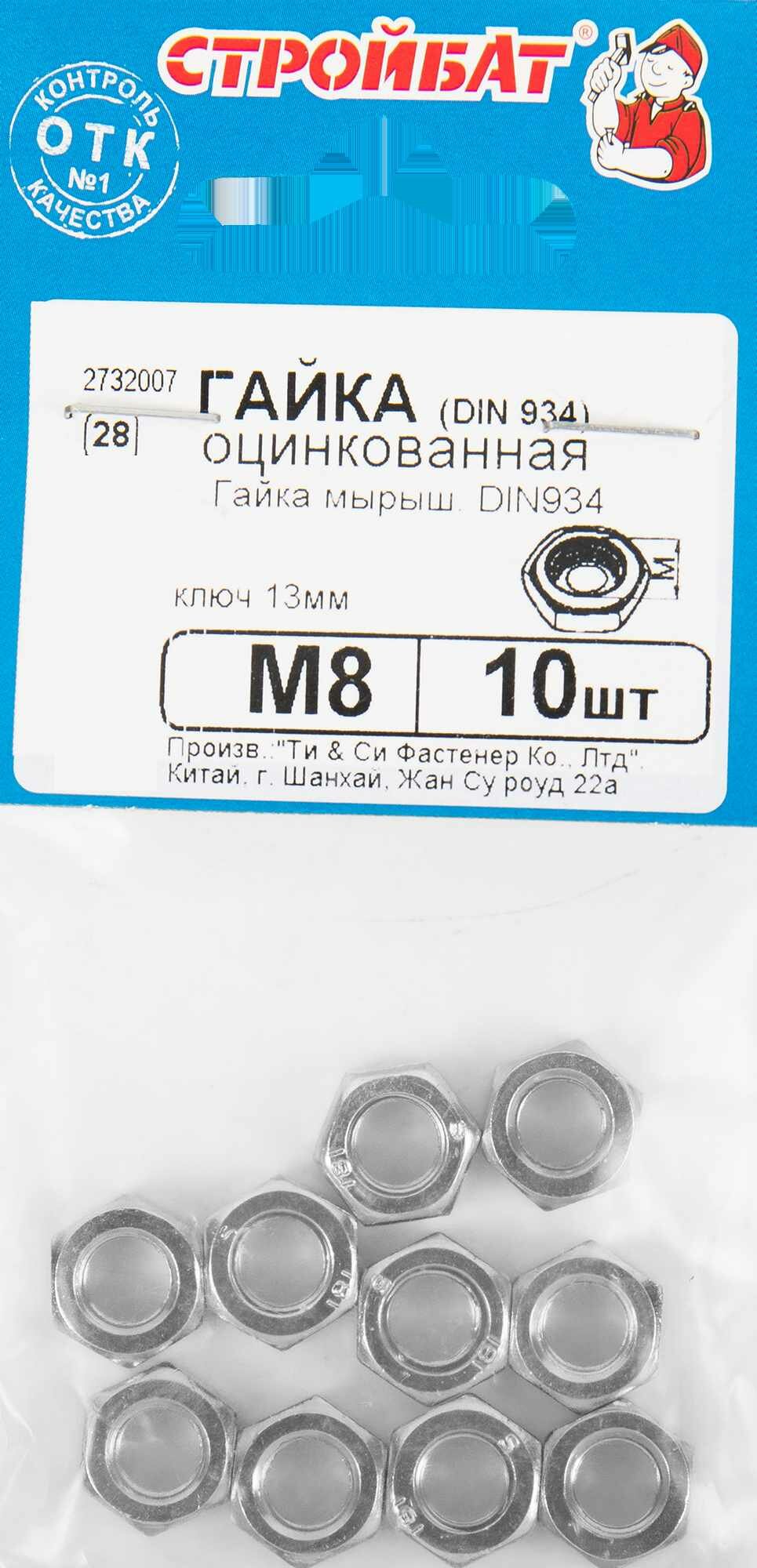 Гайка Стройбат оцинкованная DIN 934 М8 10 штук