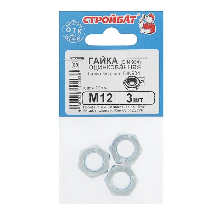 Гайка Стройбат оцинкованная DIN 934 М12 3 штуки