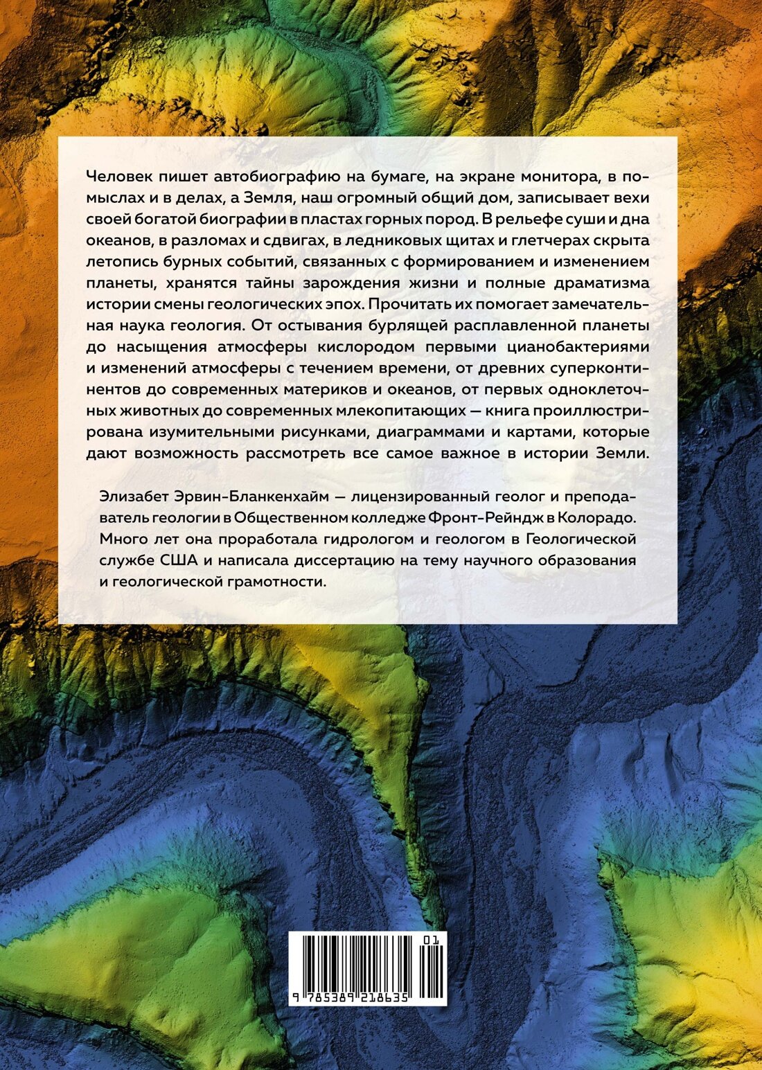 Изучение Земли представляет собой отдельную область науки, хотя она и связана с астрономией, биологией, физикой и химией. Перед вами увлекательная биография нашей планеты, которая посвящает в тайны научного, исторического и философского симбиоза человечества и Земли. Рассматривая планету как интегрированную экосистему, Элизабет Эрвин-Бланкенхайм на примерах показывает, как земля, вода, живые организмы и атмосфера поддерживают превосходный, но хрупкий баланс, который сейчас находится под угрозой. Захватывающая и местами поэтичная, книга рассказывает, каким образом Земля влияла на живые организмы и как живые организмы формировали облик нашей планеты. «В горных породах и истории Земли скрыты тайны и ключи к преодолению нынешних проблем во всех средах обитания живых организмов — воздушной, водной, наземной, — возникших в результате неустойчивости глобальных круговоротов из-за изменений климата. Более того, наш мир, если не вся Вселенная, не только является отражением таких циклов, но и адаптируется к ним: Земля вращается, поэтому солнце восходит и заходит, чтобы вновь взойти; происходят извержения вулканов, поэтому суша поднимается и опускается, только чтобы вернуться в магму и вновь восстановиться. Представление о цикличности и о том, что в масштабах геологического времени можно назвать астрономическим или планетарным непостоянством, может способствовать построению новых, более плодотворных взаимоотношений с планетой: возможно, более глубокому пониманию, уважению и проявлению заботы о нашей общей среде обитания». (Элизабет Эрвин-Бланкенхайм)