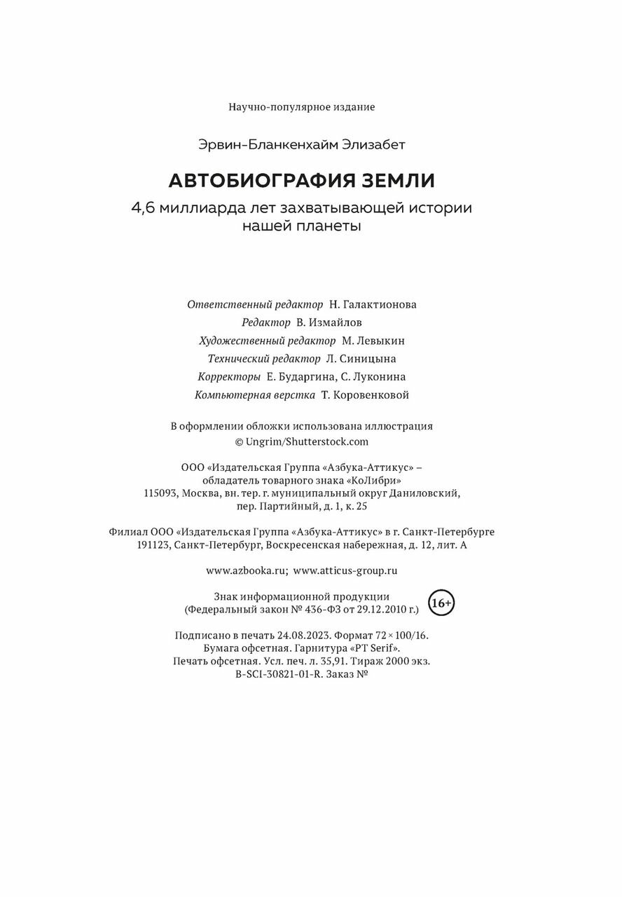 Автобиография Земли: 46 миллиарда лет захватывающей истории нашей планеты (Эрвин-Бланкенхайм Элизабет); КоЛибри, 2023