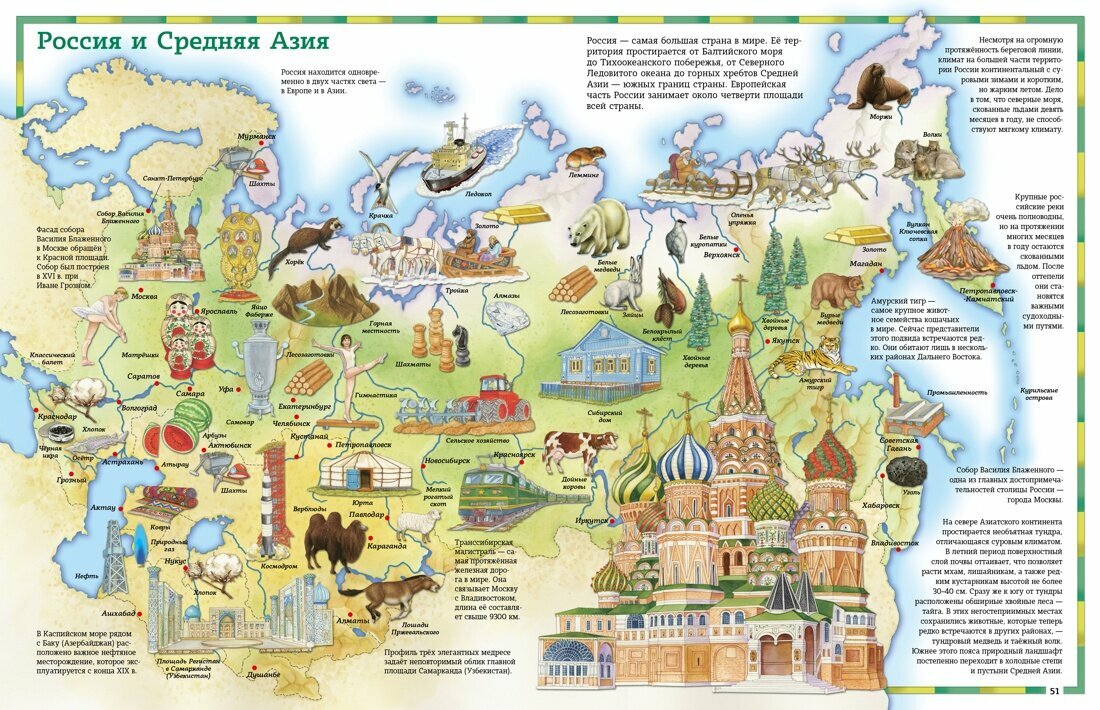 Листая этот прекрасно иллюстрированный атлас, вы совершите увлекательное кругосветное путешествие: исследуете самые отдалённые уголки планеты, узнаете множество любопытных фактов о достопримечательностях разных стран, оцените красоту уникальных природных объектов и необычных древних сооружений. На картах отмечены полезные ископаемые, памятники архитектуры, а также животные, обитающие в разных природных зонах.
