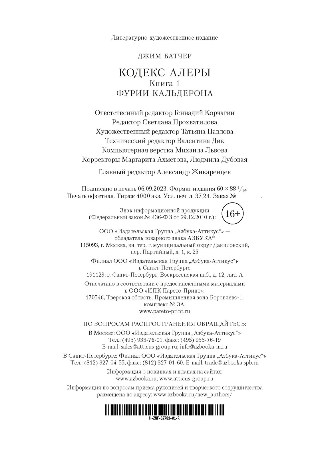 Кодекс Алеры. Кн. 1. Фурии Кальдерона (Джим Батчер); Азбука Издательство, 2023