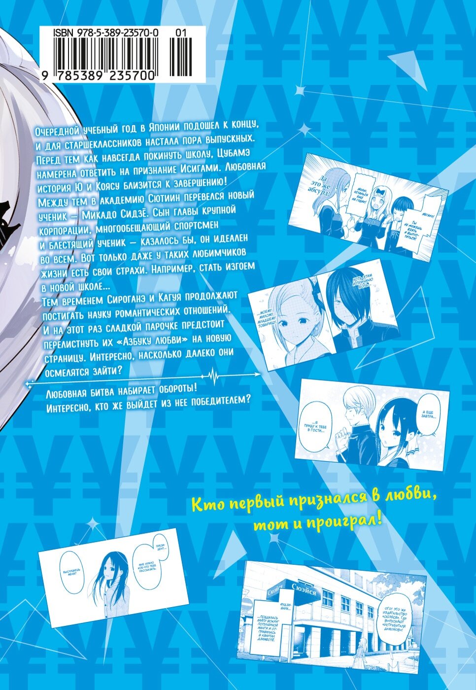 Очередной учебный год в Японии подошел к концу, и для старшеклассников настала пора выпускных. Перед тем как навсегда покинуть школу, Цубамэ намерена ответить на признание Исигами. Любовная история Ю и Коясу близится к завершению!Между тем в академию Сютиин перевелся новый ученик – Микадо Сидзё. Сын главы крупной корпорации, многообещающий спортсмен и блестящий ученик – казалось бы, он идеален во всем. Вот только даже у таких любимчиков жизни есть свои страхи. Например, стать изгоем в новой школе… Тем временем Сироганэ и Кагуя продолжают постигать науку романтических отношений. И на этот раз сладкой парочке предстоит перелистнуть их «Азбуку любви» на новую страницу. Интересно, насколько далеко они осмелятся зайти?