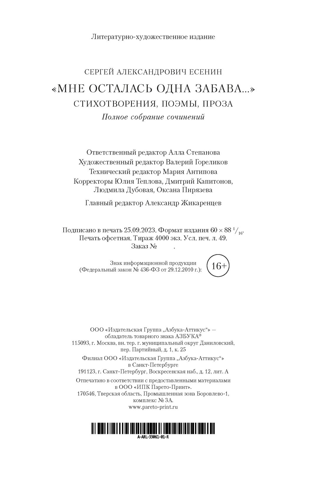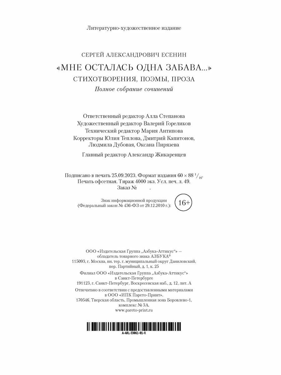 «Мне осталась одна забава...» Стихотворения поэмы проза. Полное собрание сочинений (Есенин Сергей Александрович); Азбука, 2023