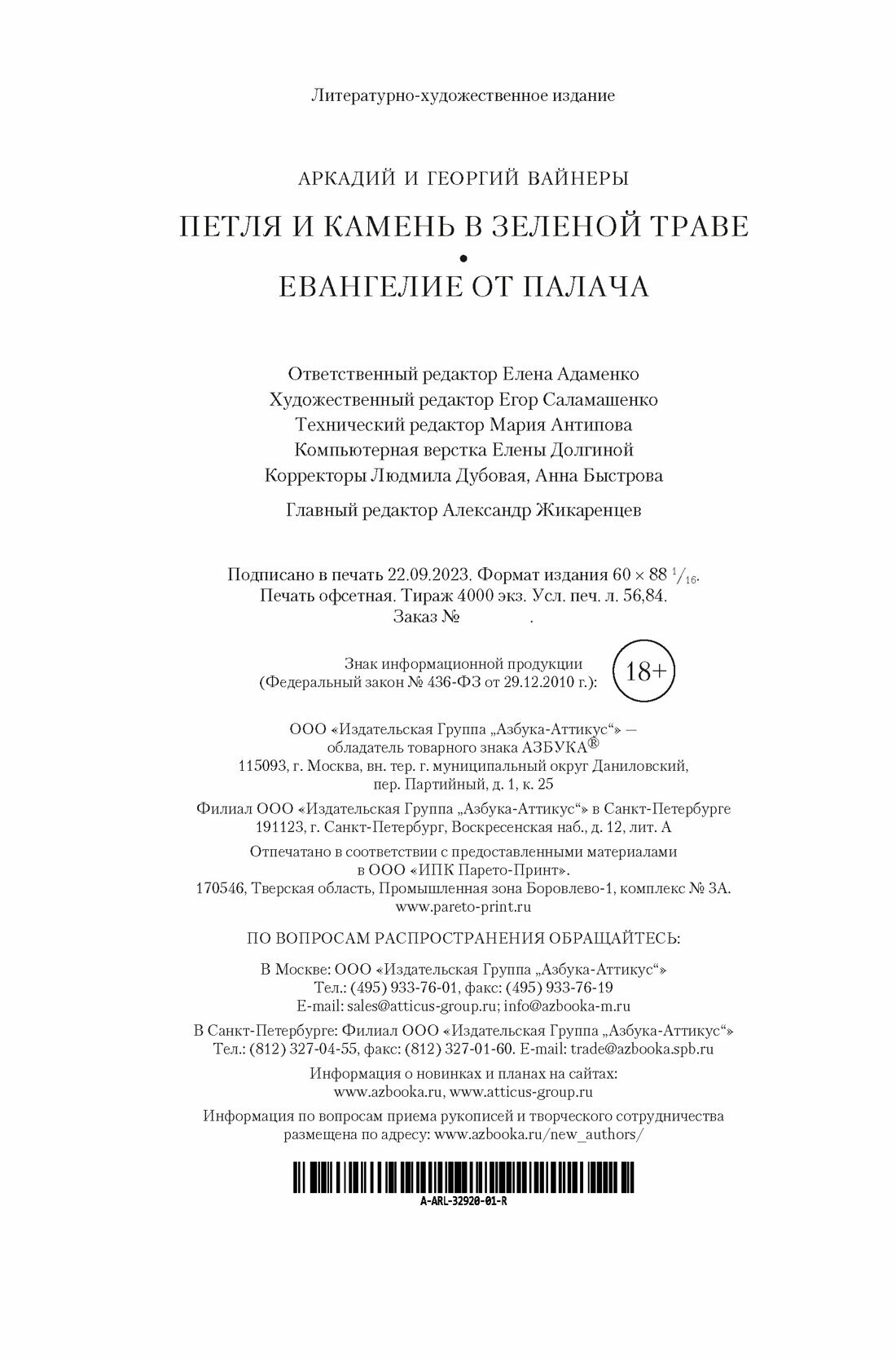 Петля и камень в зеленой траве. Евангелие от палача (Вайнер Аркадий Александрович; Вайнер Георгий Александрович); Азбука, 2023
