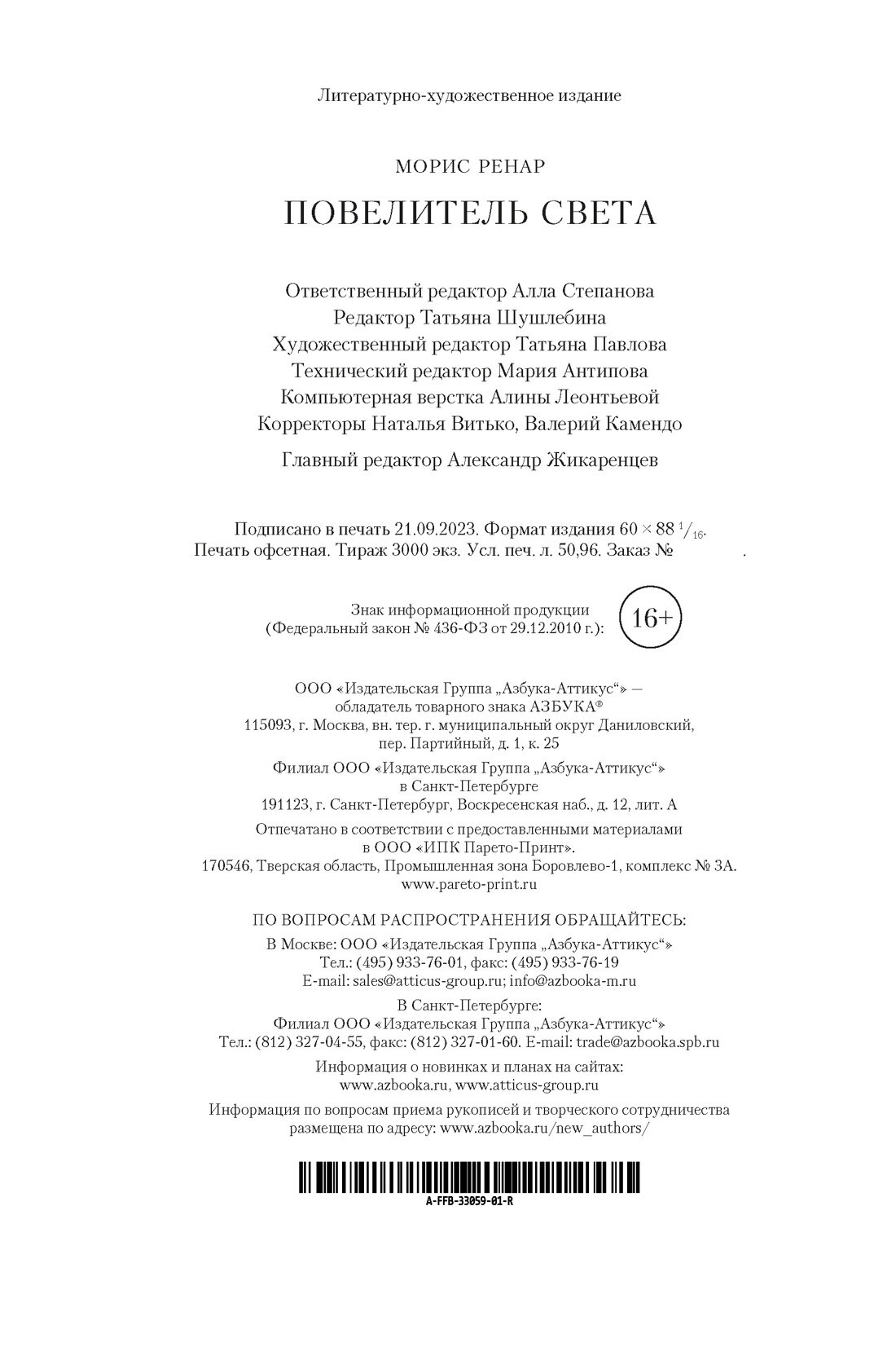 Книга: Повелитель света (Морис Ренар); Азбука, 2023