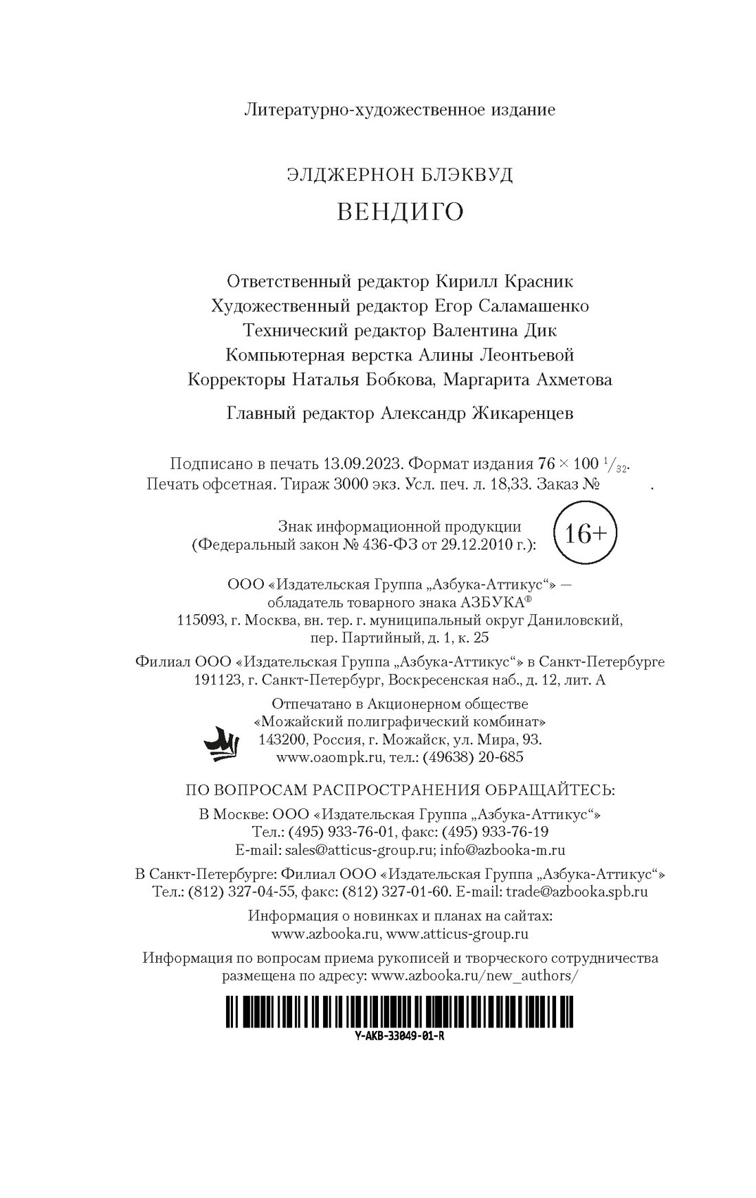 Книга: Вендиго (Элджернон Блэквуд); Азбука, 2024