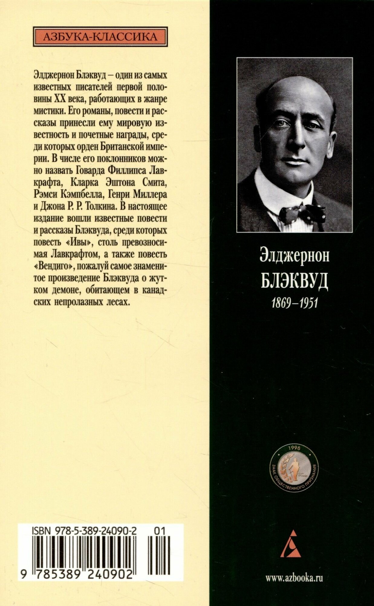 Элджернон Блэквуд — один из самых известных писателей первой половины ХХ века, работающих в жанре мистики. Его романы, повести и рассказы принесли ему мировую известность и почетные награды, среди которых орден Британской империи. В числе его поклонников можно назвать Говарда Филлипса Лавкрафта, Кларка Эштона Смита, Рэмси Кэмпбелла, Генри Миллера и Джона Р. Р. Толкина. В настоящее издание вошли известные повести и рассказы Блэквуда, среди которых повесть «Ивы», столь превозносимая Лавкрафтом, а также повесть «Вендиго», пожалуй самое знаменитое произведение Блэквуда о жутком демоне, обитающем в канадских непролазных лесах.