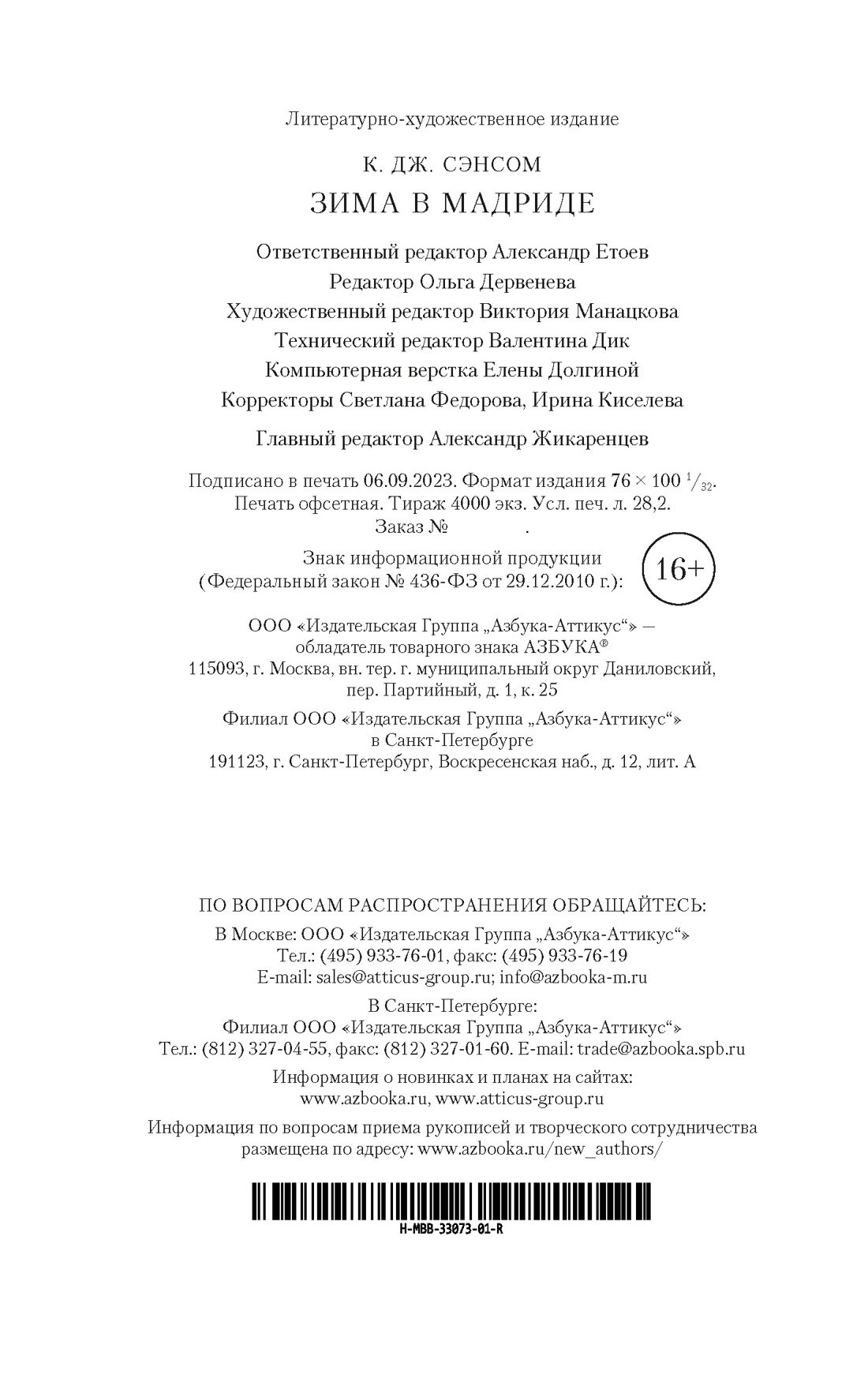 Книга: Зима в Мадриде (Сэнсом Кристофер Джон); Азбука, 2023