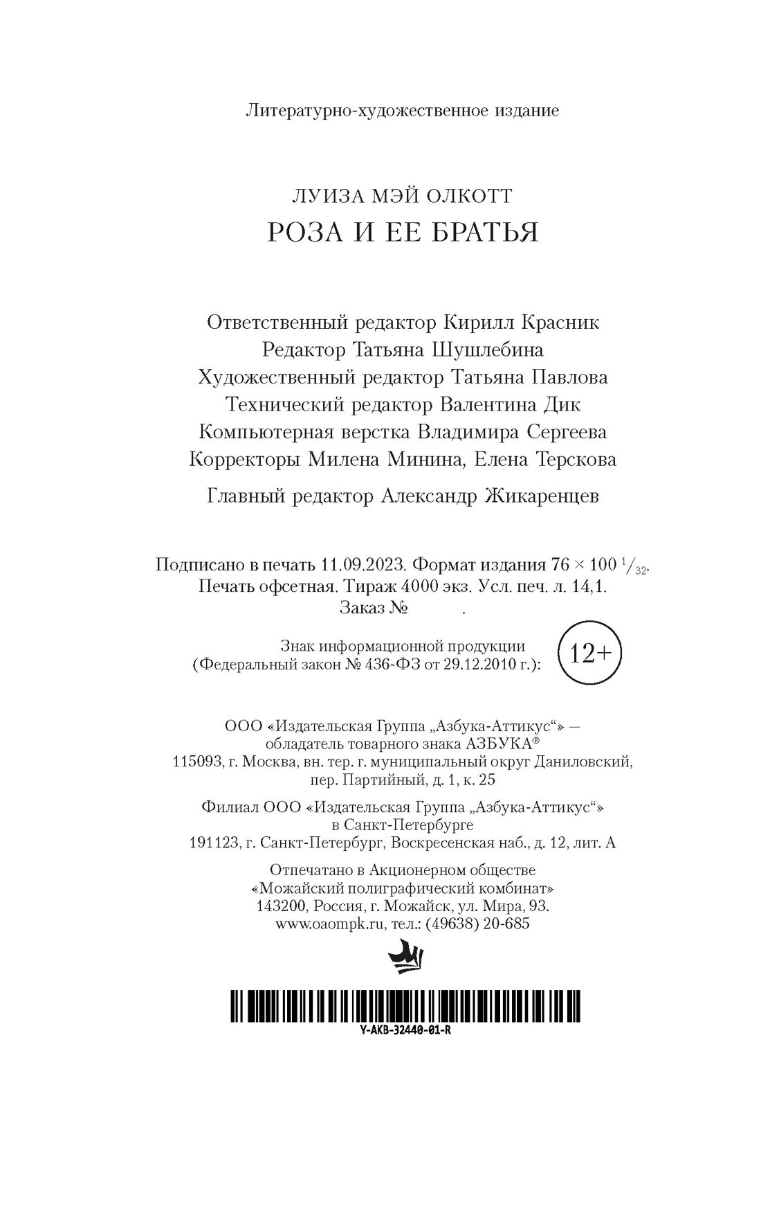 Книга: Роза и ее братья (Луиза Мэй Олкотт); Азбука, 2023