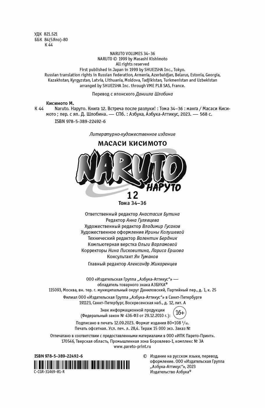 И вот, наконец, все мы добрались до середины этой замечательной истории - 12 книга нашего, всеми любимого, светлого и яркого апостола шоненов "Наруто". Невероятно с какой скоростью издаётся эта серия, за что большое спасибо издательству "Азбука" и удачи им в преодолении оставшейся половины.