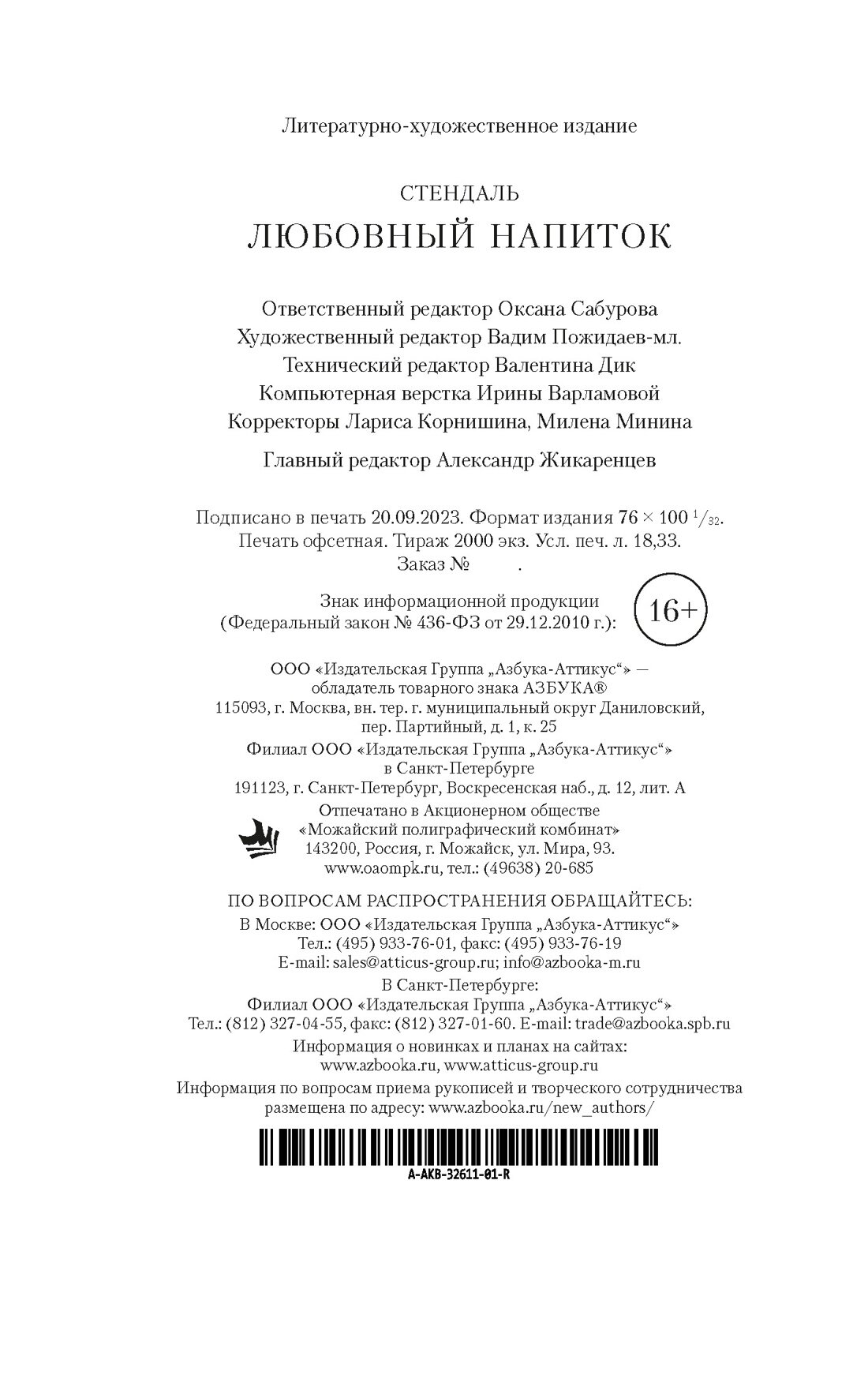 Книга: Любовный напиток (Стендаль Фредерик); Азбука Издательство, 2023