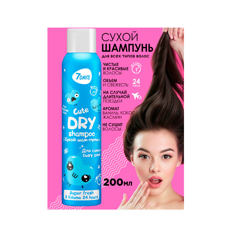 Сервис сравнения цен СкидкаГИД предлагает сравнить цены на товар «Сухой шампунь 7 DAYS Cute Dry Shampoo Шам-пуньк для самых Busy дней 200 мл»
