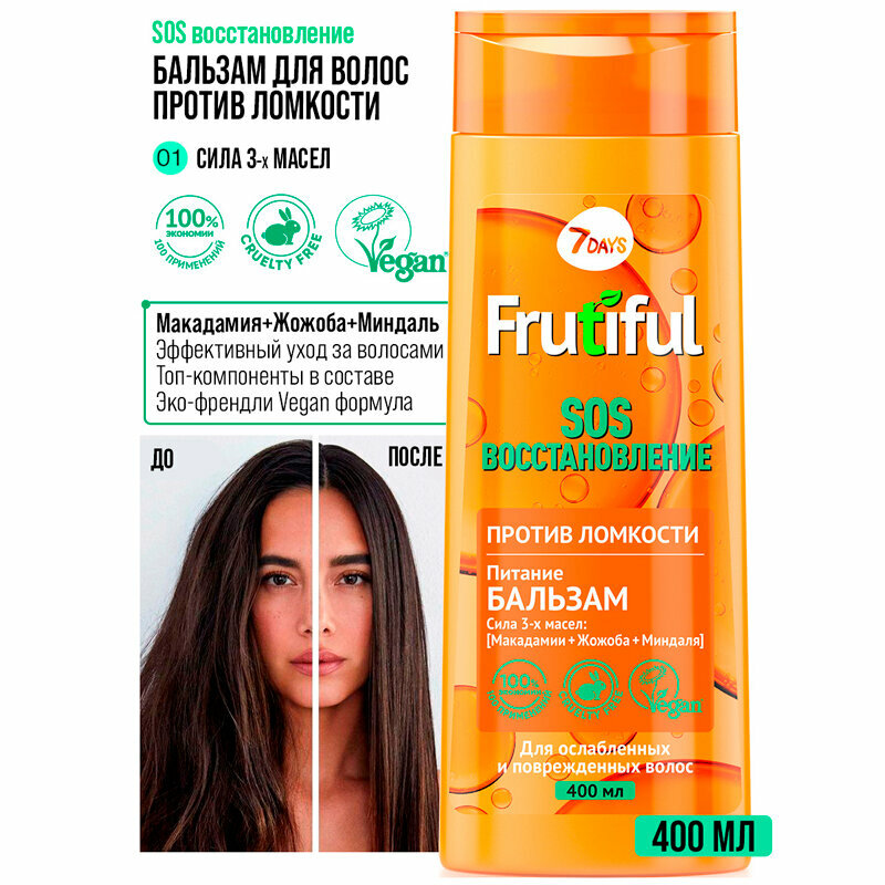 Бальзам для волос 7DAYS Frutiful Super SOS восстановление против ломкости 400 мл 7 Days