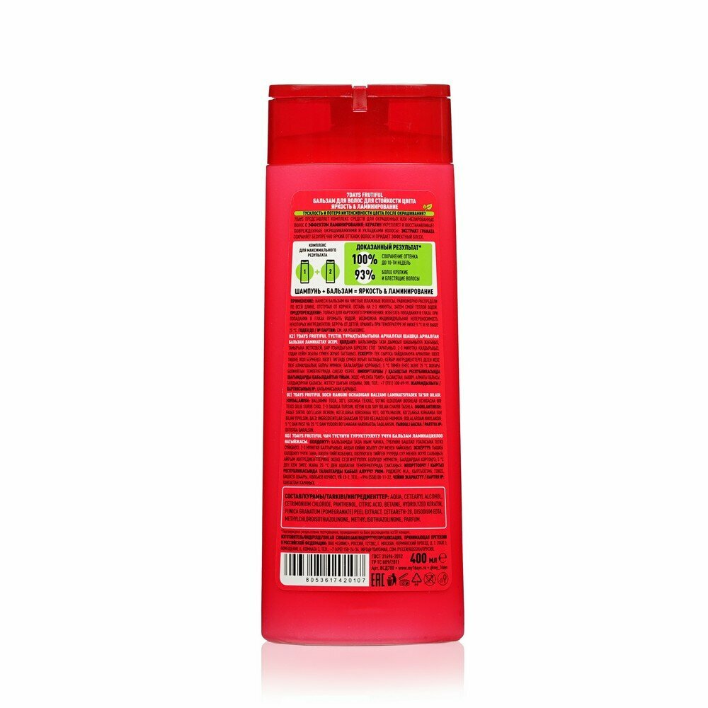 Бальзам для волос 7DAYS Frutiful Яркость и ламинирование для стойкости цвета 400 мл 7 Days