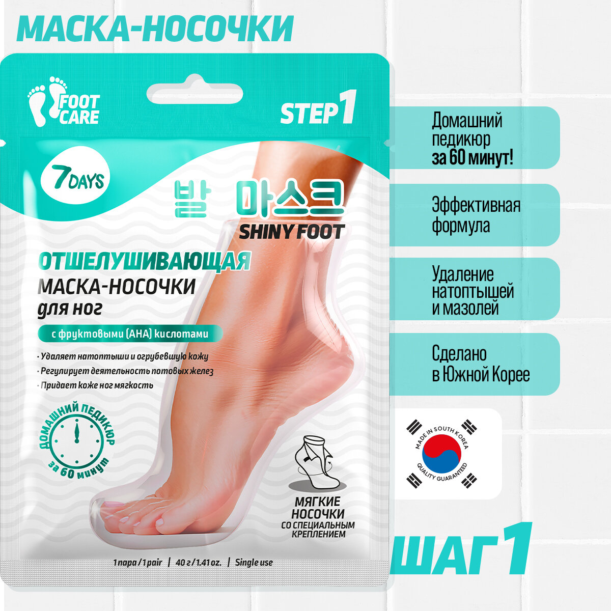 Натоптыши, трещины и огрубевшая кожа ног? Попробуй новинку - интенсивно отшелушивающую и смягчающую маску-носочки для ног SHINY FOOT.