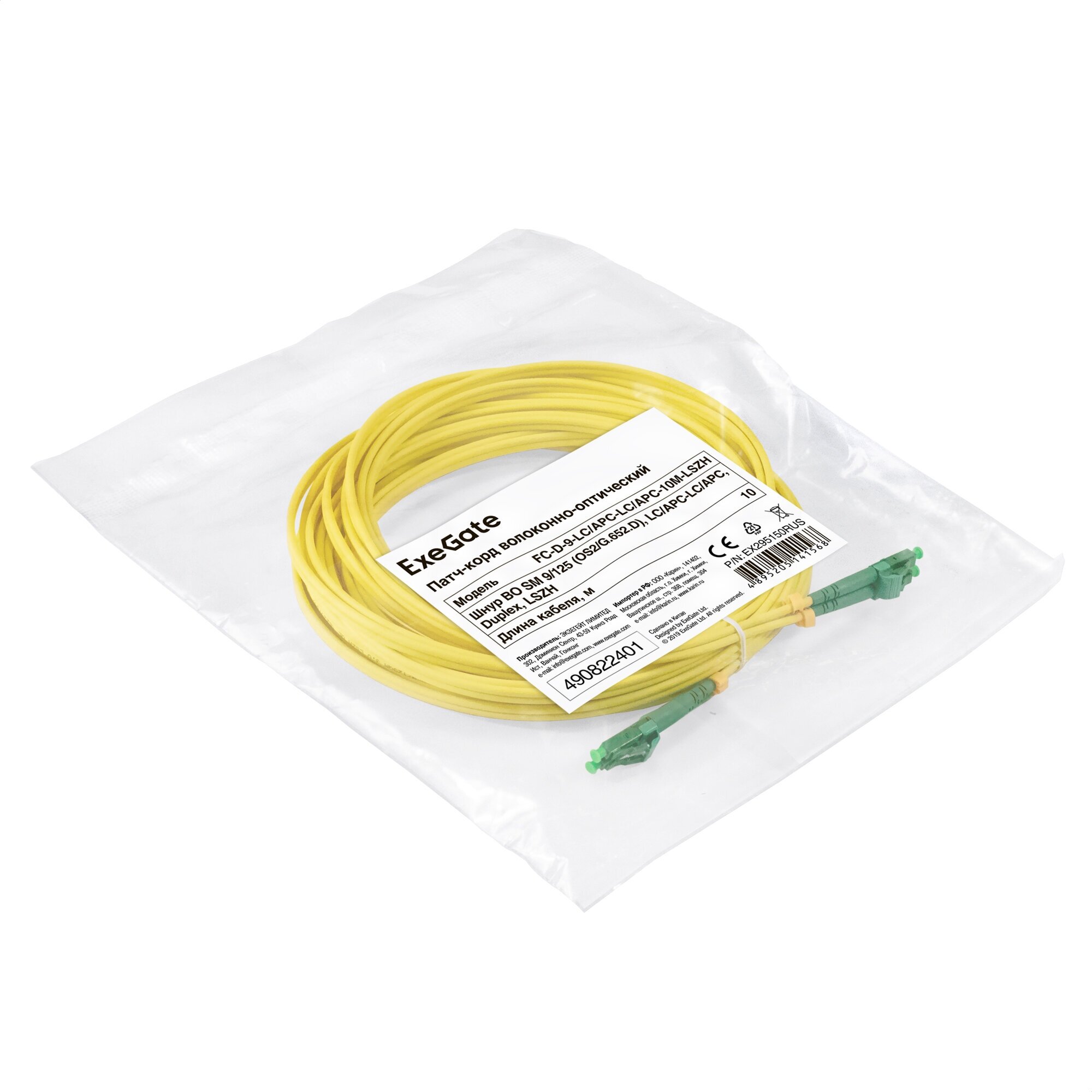 Патч-корд волоконно-оптический ExeGate (Шнур ВО SM 9/125 (OS2/G.652.D), LC/APC-LC/APC, Duplex, LSZH, 10м)