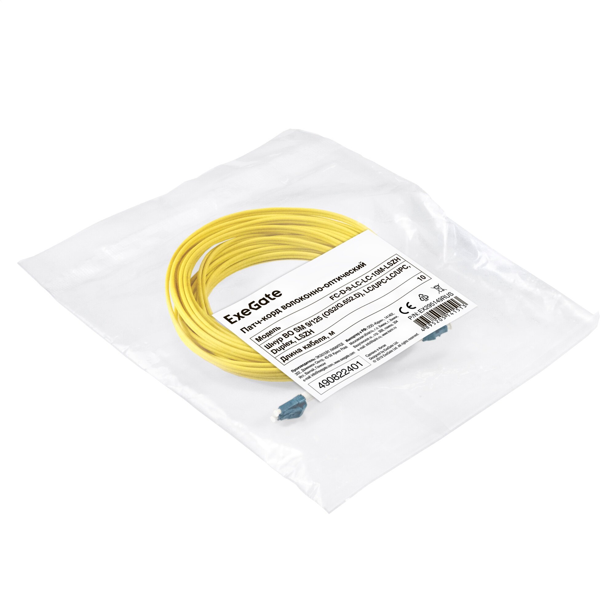 Патч-корд волоконно-оптический ExeGate (Шнур ВО SM 9/125 (OS2/G.652.D), LC/UPC-LC/UPC, Duplex, LSZH, 10м)