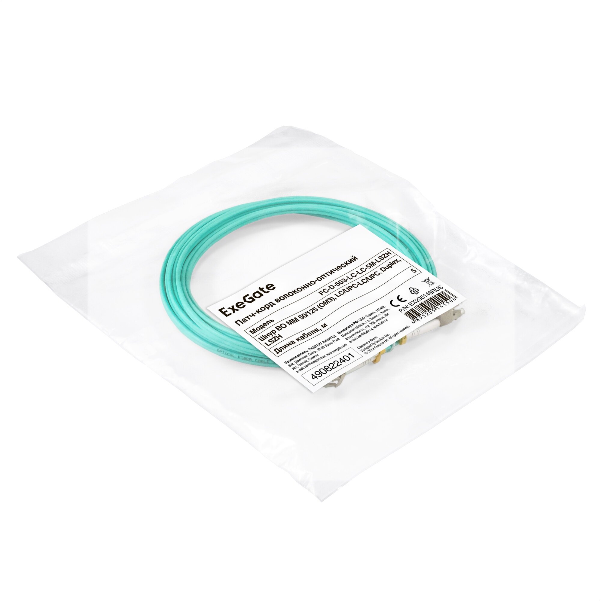 Патч-корд волоконно-оптический Exegate EX295146RUS (Шнур ВО MM 50/125 (OM3) LC/UPC-LC/UPC Duplex LSZH 5м) FC-D-503-LC-LC-5M-LSZH