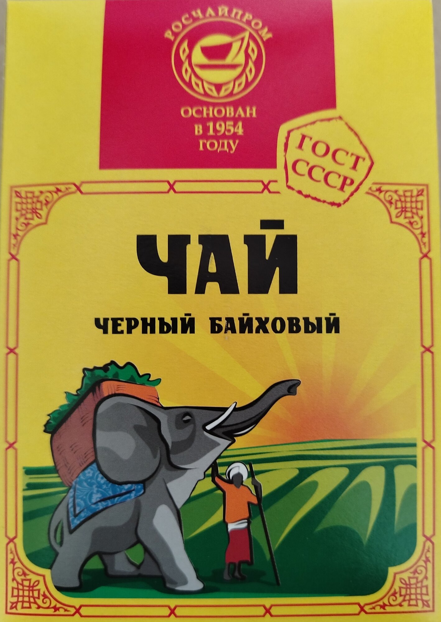 Чай черный байховый листовой, высокое качество, знак ГОСТ - это все Росчайпром 250 г. Заваренный напиток имеет благородный цвет и бархатный вкус.